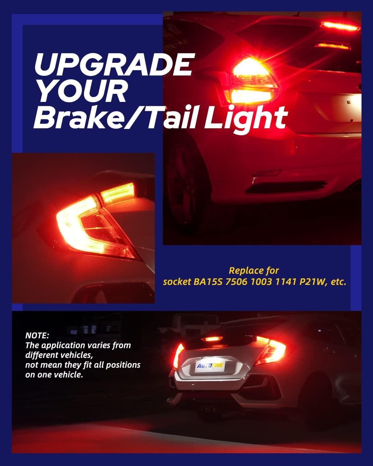 AUTOONE 1156 LED Bulb, LED Reverse Lights 300% Brighter BA15S 7506 1003 1141 P21W 6500K White LED Replacement for Backup Light, Tail Light, Pack of 2(Red)