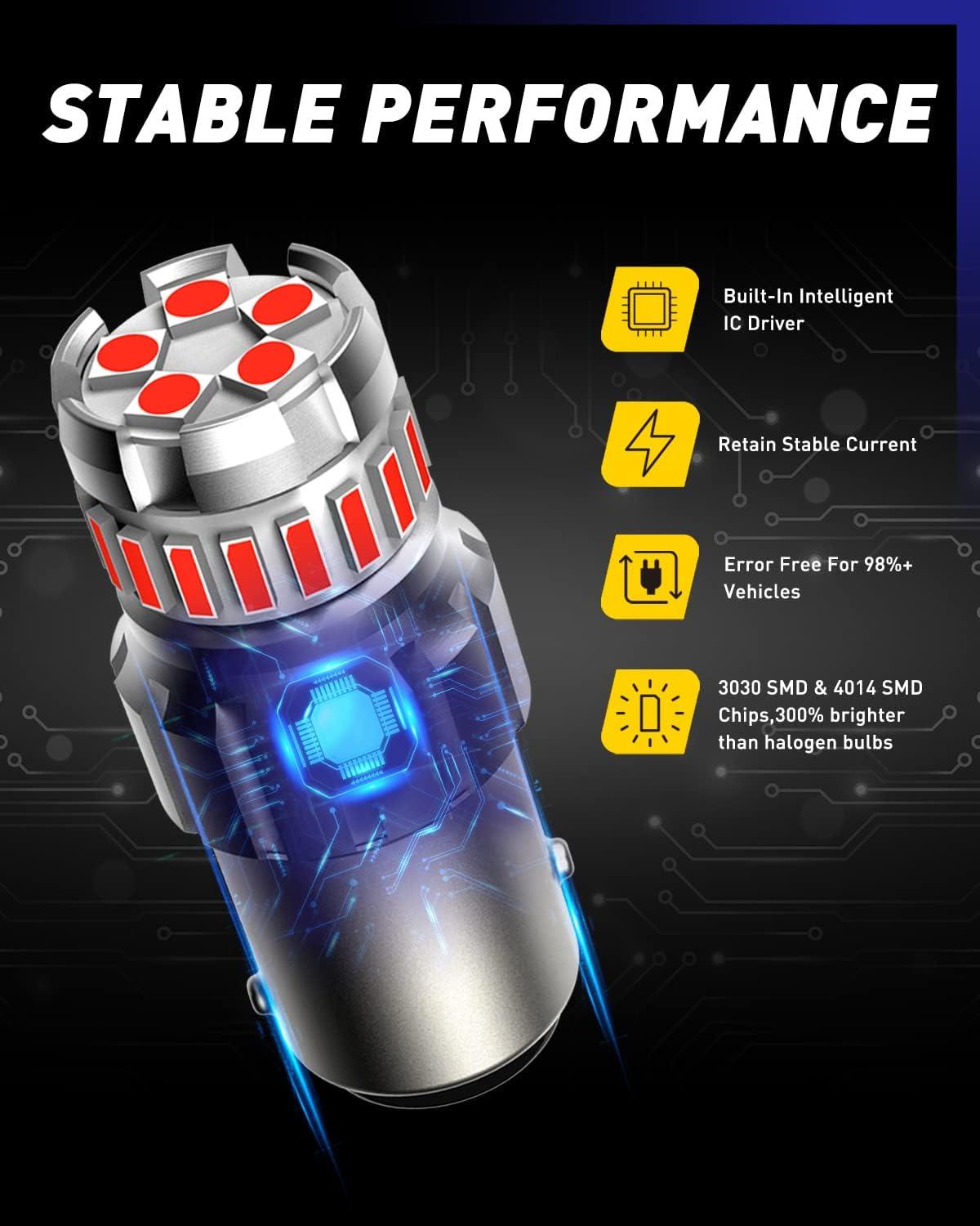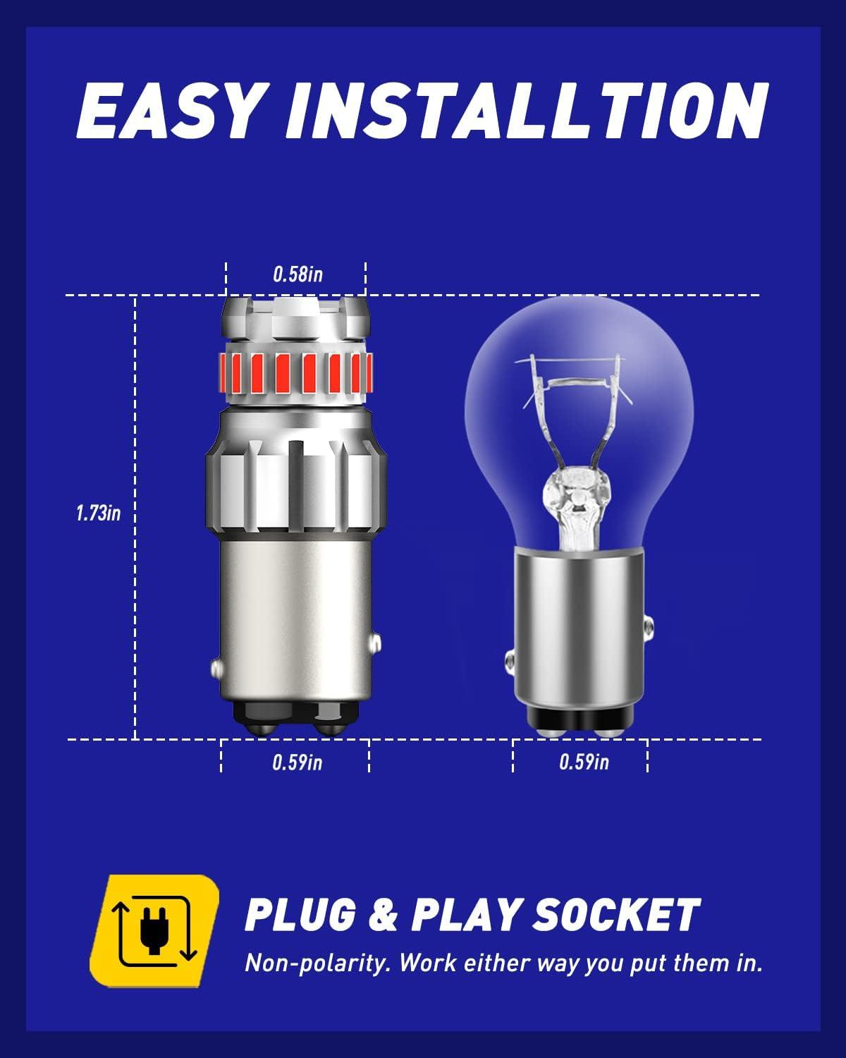 【Fitment】- Compatible with 1157 BAY15D 1157 1157NA 1157A 1178A 1196 2057 2057A 2357 2357A 2357NA 2397 7528 sockets. 【Application】- Great replacement for back up reverse lights, brake lights, tail lights etc. Plug and play, non-polarity