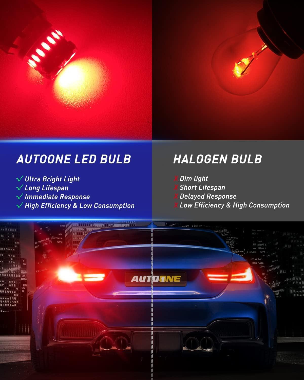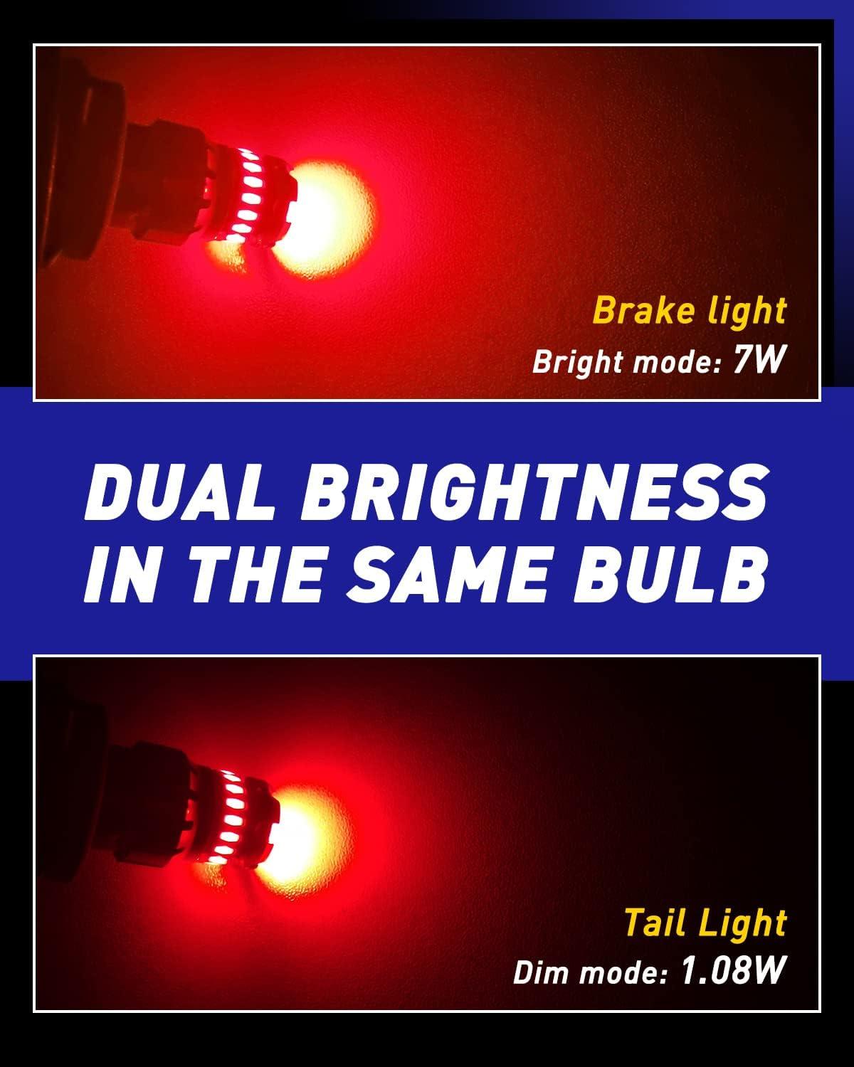 【Ultra Bright】- AUTOONE 1157 led bulb is 360 degrees illumination increase the brightness and visibility, 300% brighter output than halogen, without dark spots, no glare to other drivers. Instant start, no delay, safe and reliable enough, see more clearly when reversing. 【Dual Brightness】- There are dual brightness in the same bulb. The dim mode is tail light, the bright mode is turn light, backup reverse light