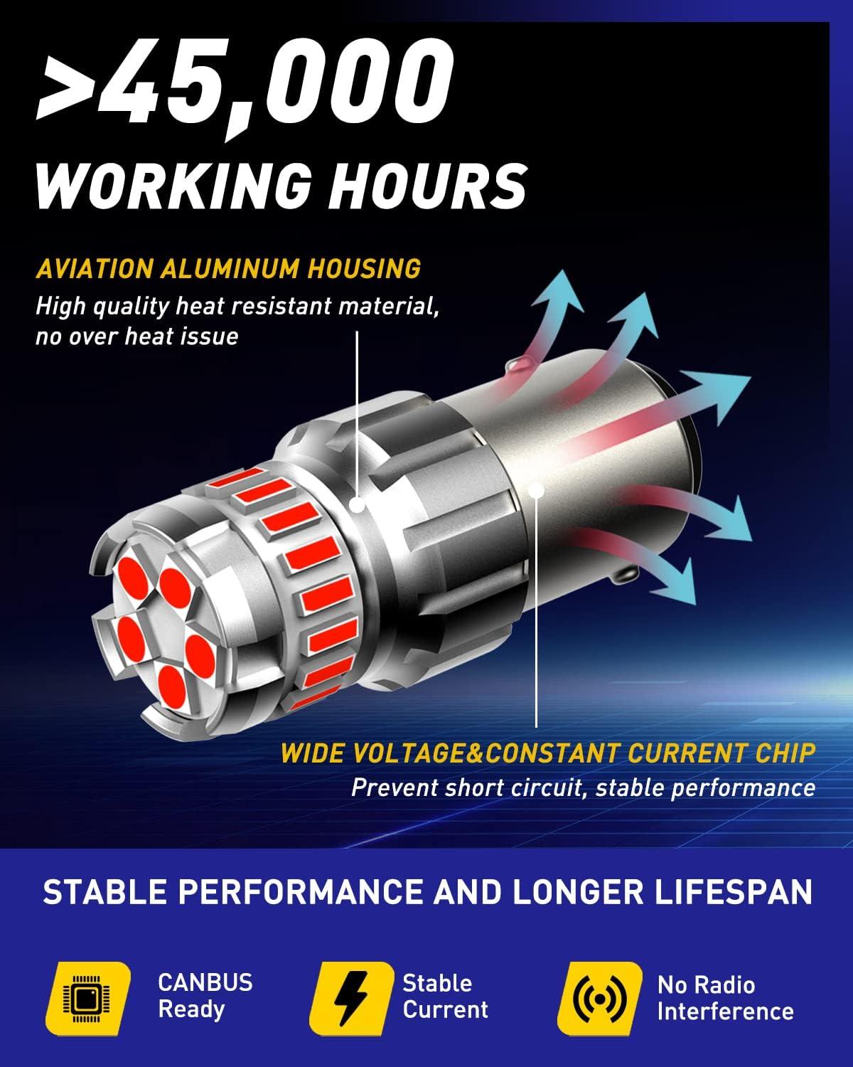 【Longer Working Hours】- AUTOONE 7528 led bulb is aircraft grade aluminum body built and unique bump appearance design increase the heat dissipation area. Wide voltage & constant current provide up to 45, 000 hours lifespan and low power consumption. No more frequent changes improved driving experience