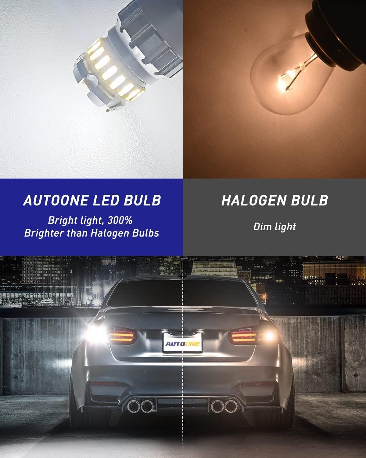 【Ultra Bright】- AUTOONE 1157 led bulb is 360 degrees illumination increase the brightness and visibility, 300% brighter output than halogen, without dark spots, no glare to other drivers. Instant start, no delay, safe and reliable enough, see more clearly when reversing. 【Dual Brightness】- There are dual brightness in the same bulb. The dim mode is tail light, the bright mode is turn light, backup reverse light