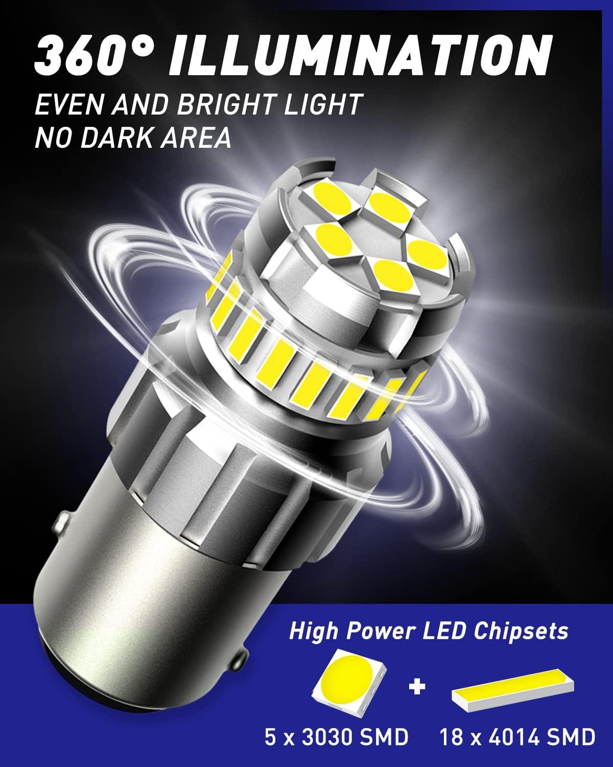 AUTOONE 1157 LED Bulb White 6500K, 2057 2357 7528 BAY15D LED Bulbs for Backup/Reverse Light, Tail Light, Brake Light, 300% Brighter Canbus Ready Plug and Play LED Bulbs, Pack of 2(White)