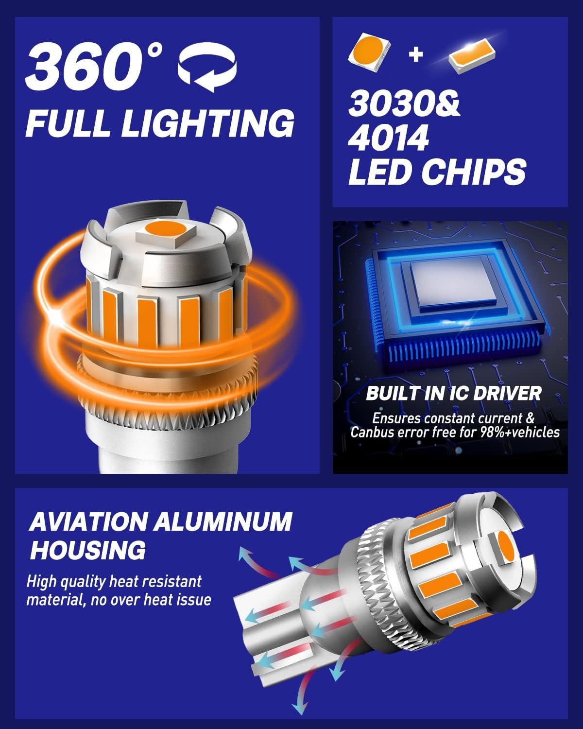 HIGH BRIGHTNESS: 194 LED bulbs uses 12pcs 4014SMD and 1pcs 3030SMD Chips. 300% brighter than stock bulbs, 6500K white provides better visibility. 360° lighting angle for allover light emission, no dark spots or shadowed areas.
