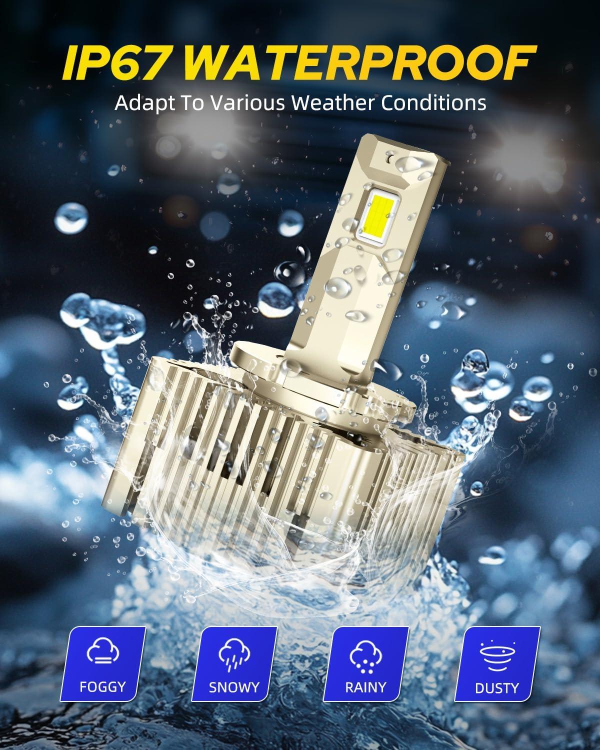 50000 Hours Lifespan: Premium alumium lamp body and glass tube, makes AUTOONE D3S bulbs more durable than the others. IP67 waterproof keeps dusts and liquids out, enables you to drive with confidence in all environments.