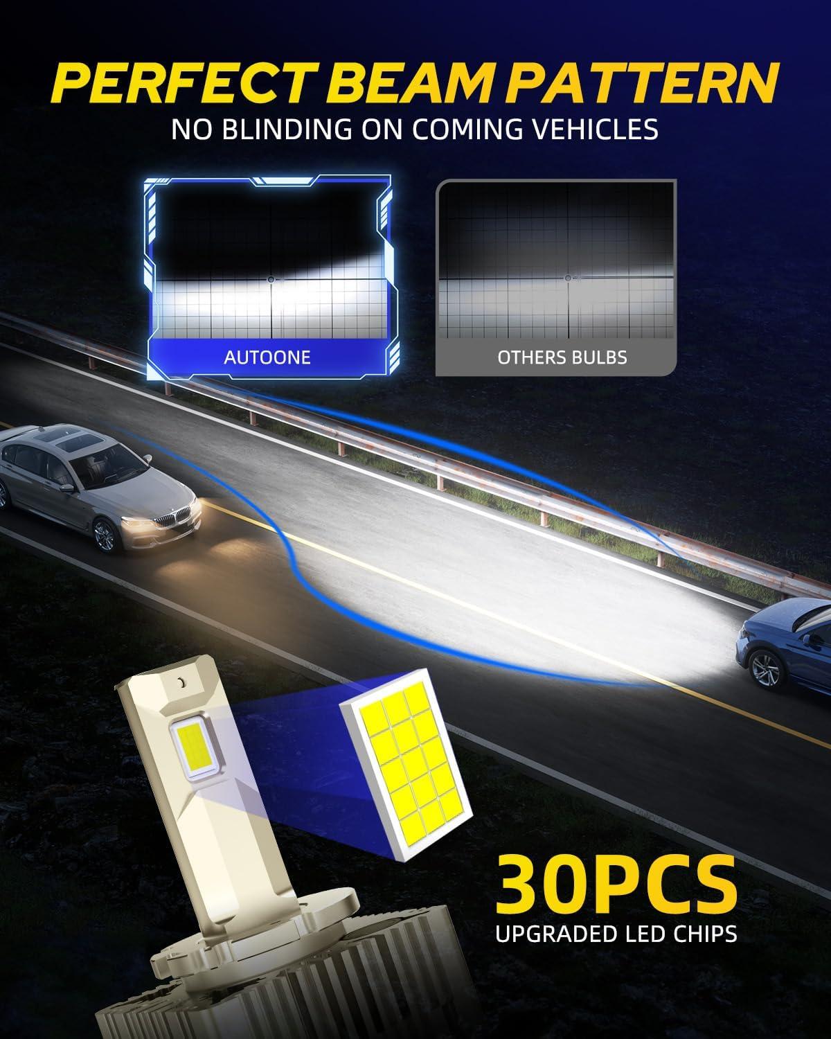 imageAUTOONE 2025 Latest D3S Bulbs 1000 Brighter D3S Bulbs 34000 Lumens 6000K Brightest D3R Fog Light 50000 Hours Longer LifespanD1SD1R