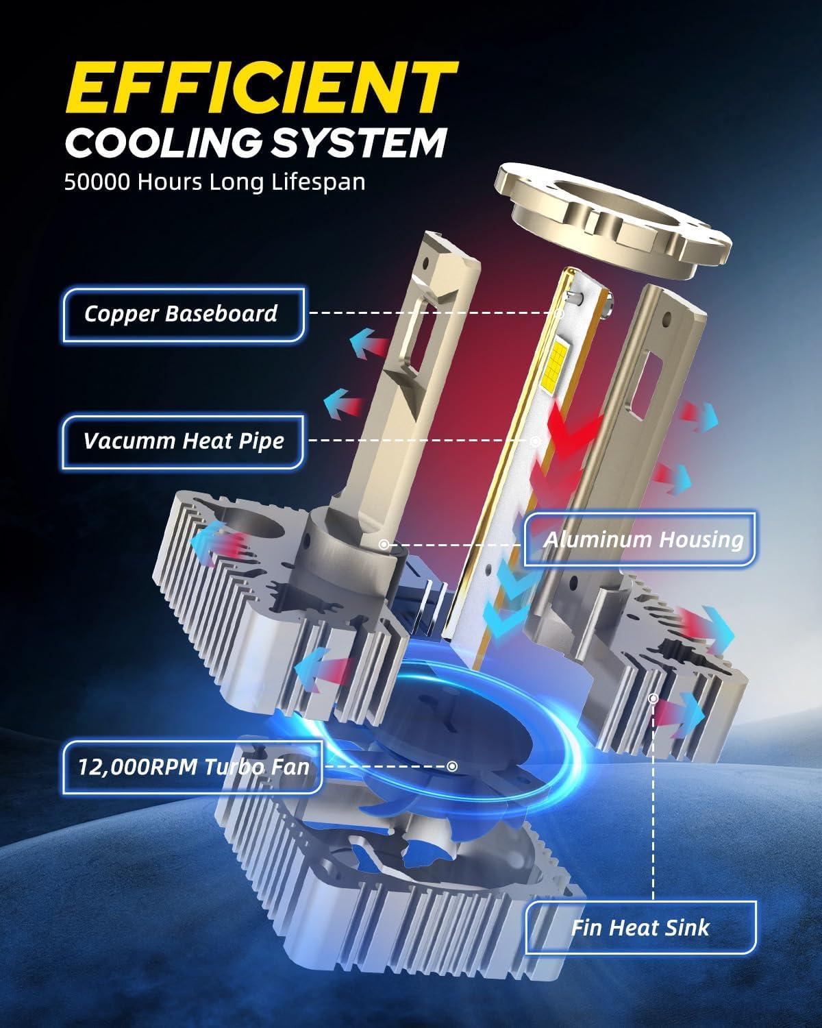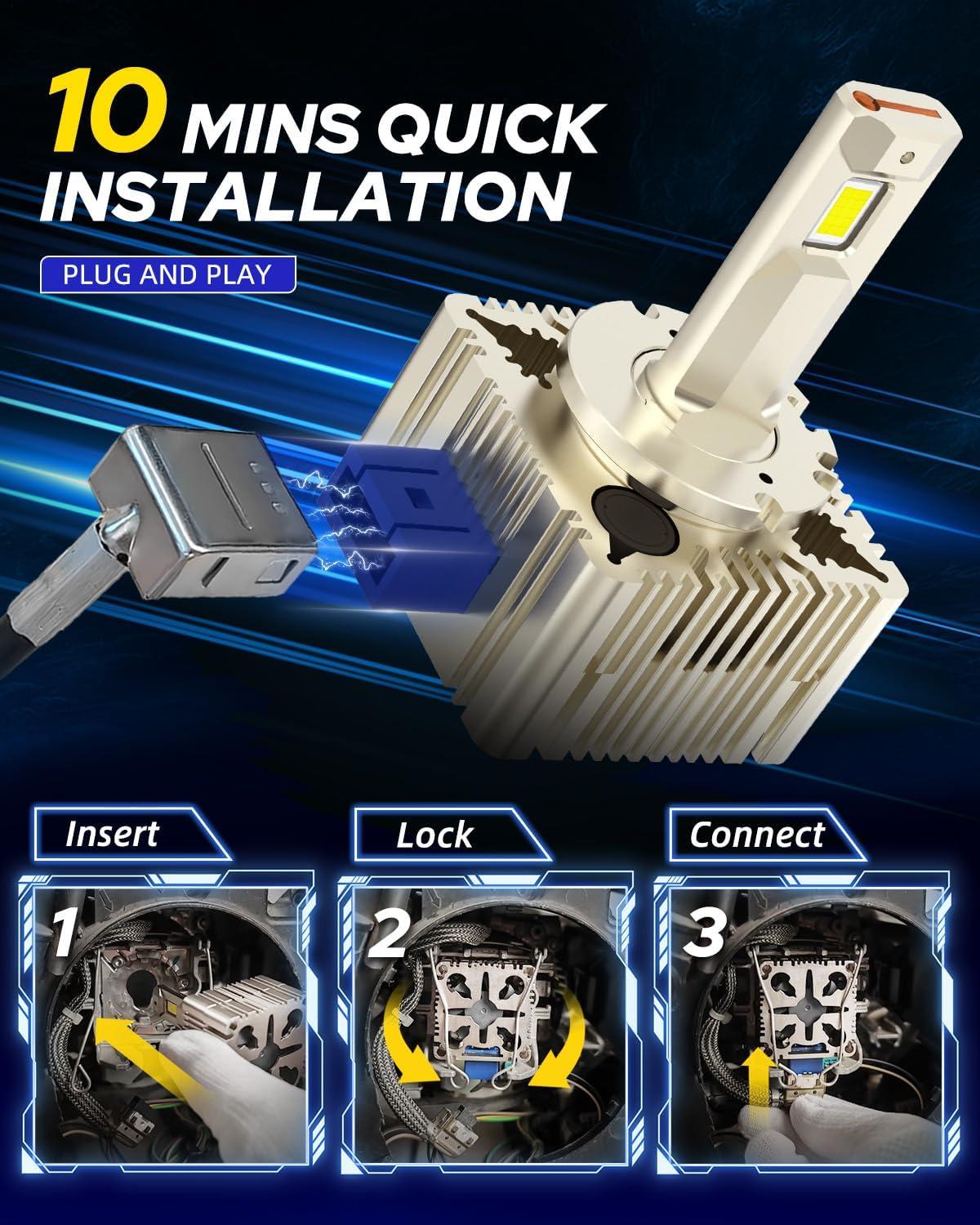 imageAUTOONE 2025 Latest D3S Bulbs 1000 Brighter D3S Bulbs 34000 Lumens 6000K Brightest D3R Fog Light 50000 Hours Longer LifespanD2SD2R