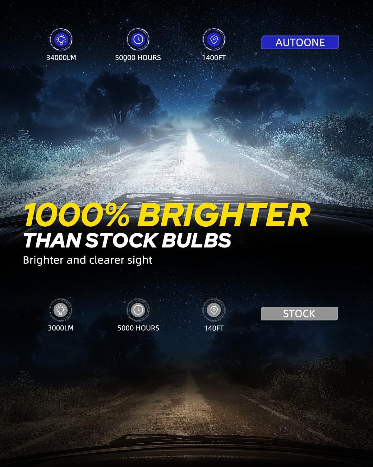AUTOONE 2025 Latest D3S Bulbs, 1000% Brighter D3S Bulbs, 34000 Lumens 6000K Brightest D3R Fog Light, 50000 Hours Longer Lifespan(D2S/D2R)