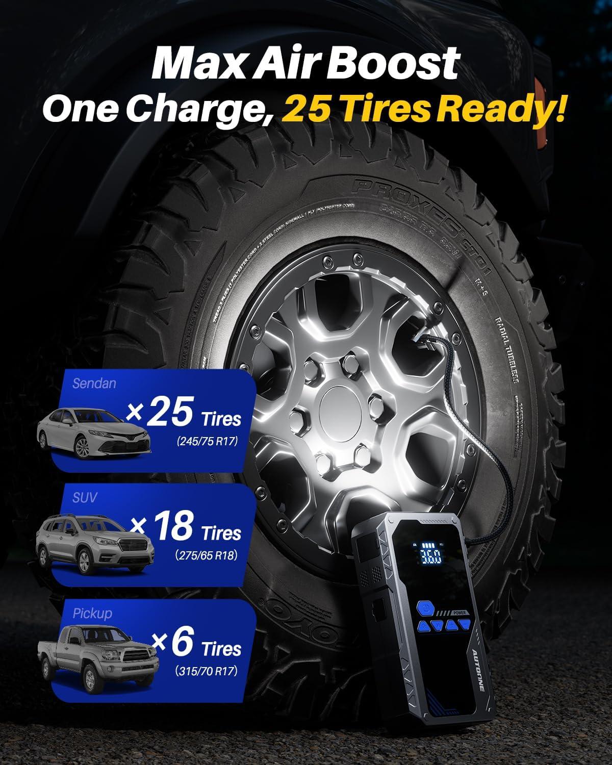 Discover the latest AUTOONE 8000A Jump Starter with Air Compressor (All Gas/12L Diesel), 150PSI Car Jumper Starter Portable, Jump Box Tire Inflator with LED Flashlight, LCD Display, Storage Case(8000A with inflator) from and take advantage of our limited-time introductory offer.
