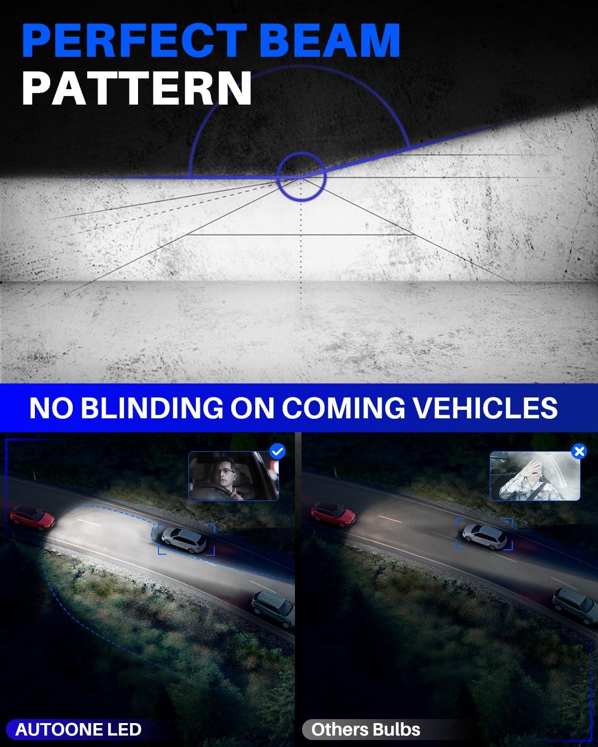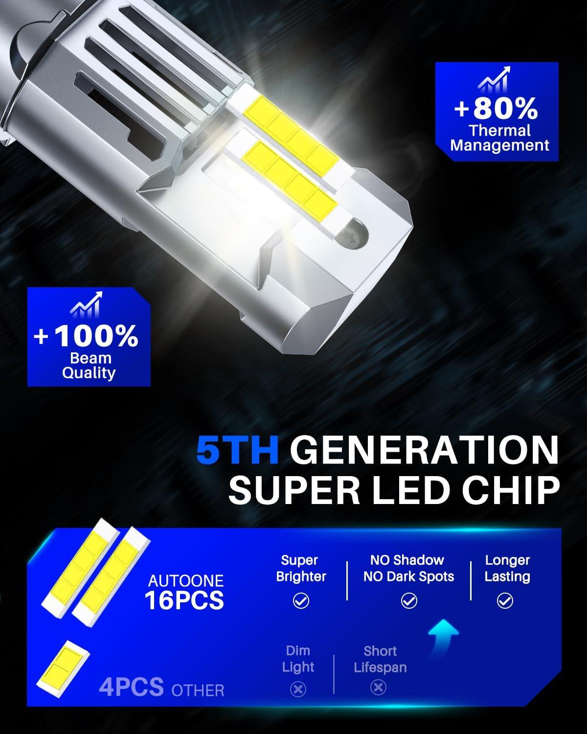 【900% Upgrade】 Equipped with top automotive-grade chips, autoone upgraded h4 bulbs deliver an impressive brightness per pair at a cool 6500K. The super-focused pattern ensures a wider and longer lighting range, making the 9003/hb2/h4 bulb 9 times brighter thanstock bulbs