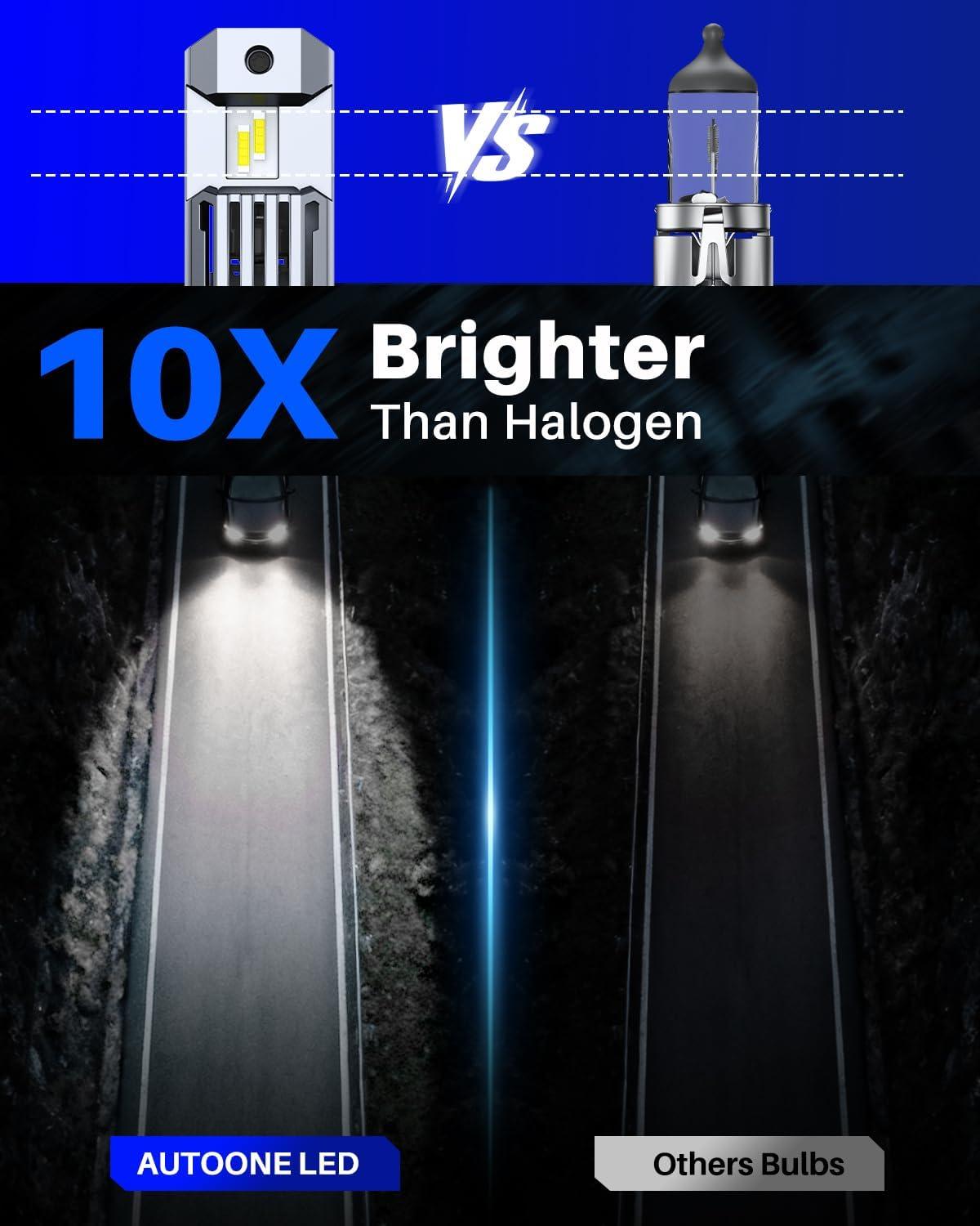 AUTOONE 9003 H4 HB2 LED Bulb, 50000LM 900% Brightness, Compact Design 99% Compatibility, Longer Lifespan, IP68, Quick Installation, Pack of 2(H11/H8/H9)