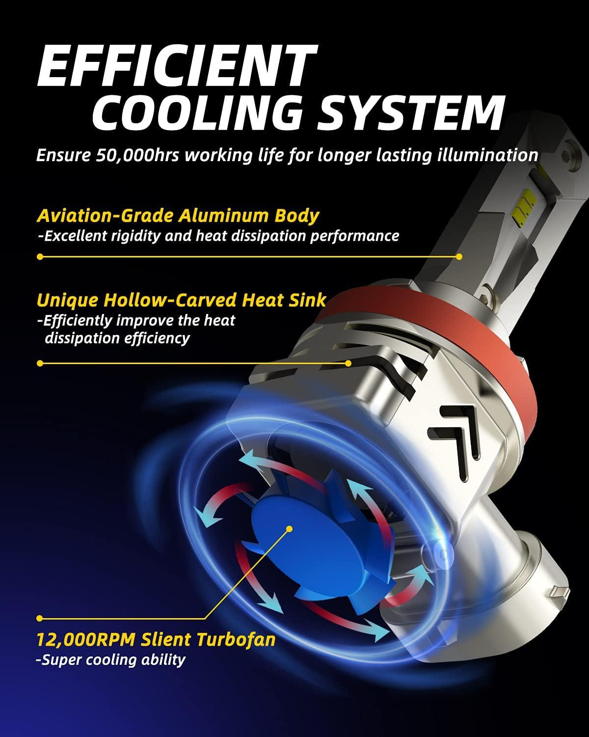 【60,000 Hours Life】The built-in copper tube and overall aviation aluminum body can effectively extract heat from the chip, which maximizes the service life and performance of the bulb. Even with 12 hours of daily use, the bulb lasts more than 10 years.