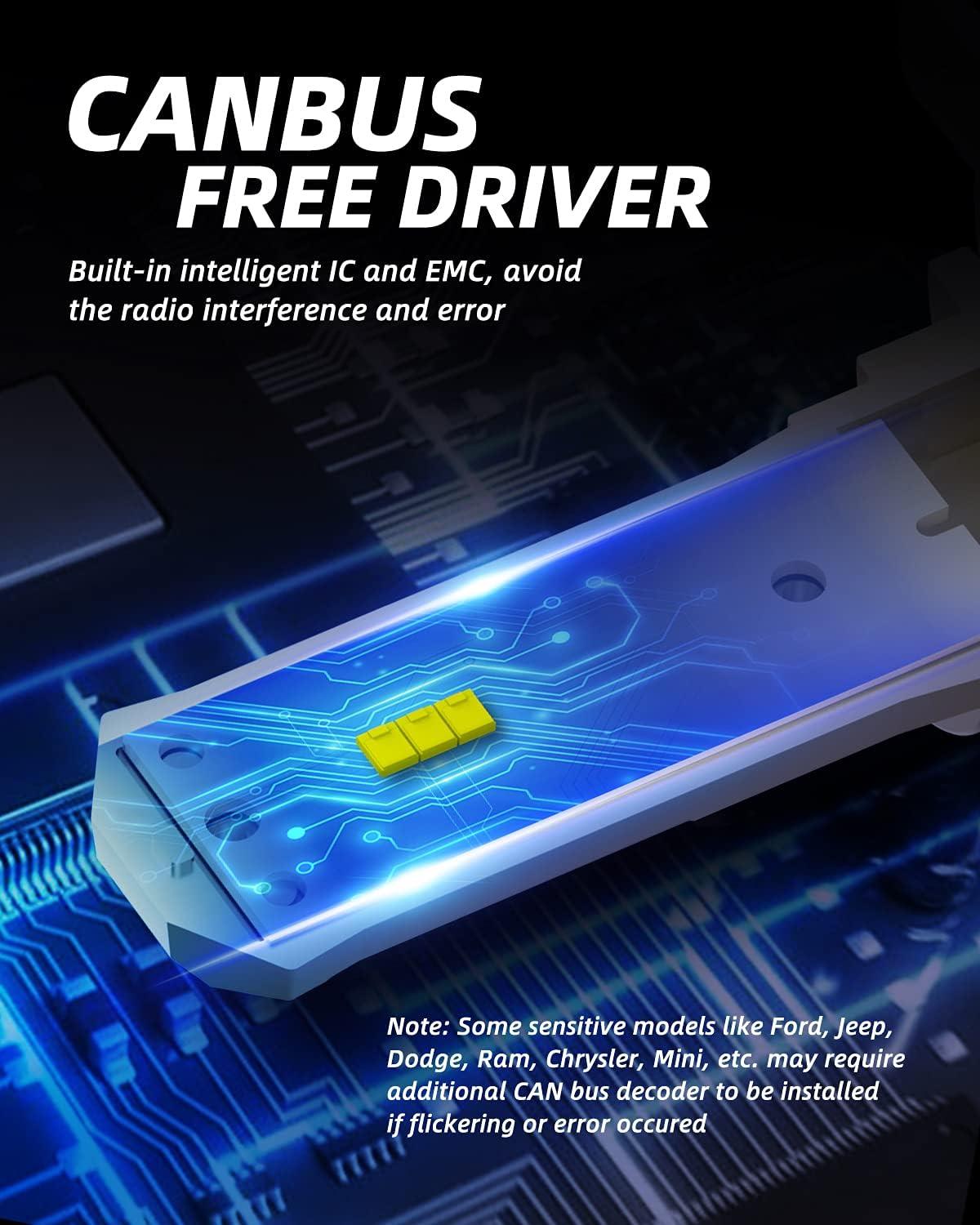 【99% Vehicle Applicable】:Built-in New Upgraded intelligent IC driver, no radio interference, CANBUS ready for 99% vehicle systems. Say goodbye annoying flickering and code errors when driving. Amazon filter system may not be 100% accurate, please check the user manual and the bulb size to verify the compatibility before purchasing.