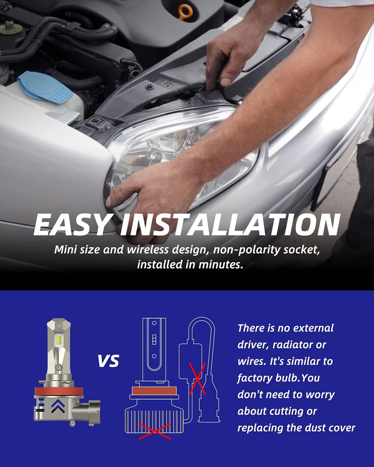 【Replace by Yourself】All in one and mini size design make AUTOONE 9005 9006 LED light bulbs easy to install. You can convert the original bulbs to these LED bulbs by yourself in your garage. Just twist the old bulbs out and twist the new ones in.