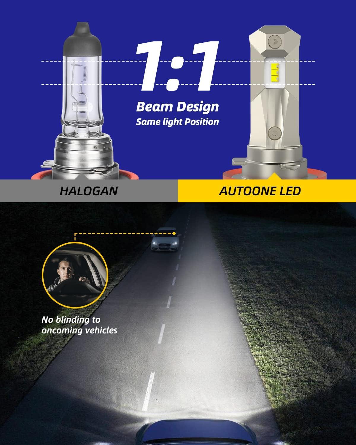 AUTOONE 9005 9006 Bulbs Combo, 80,000LM 6000K White Super Bright 9005/HB3 9006/HB4 Fanless Halogen Replacement Fog Light Bulbs, Non-Polarity Anti Flicker, Plug and Play, Pack of 4(H11/H8/H9)