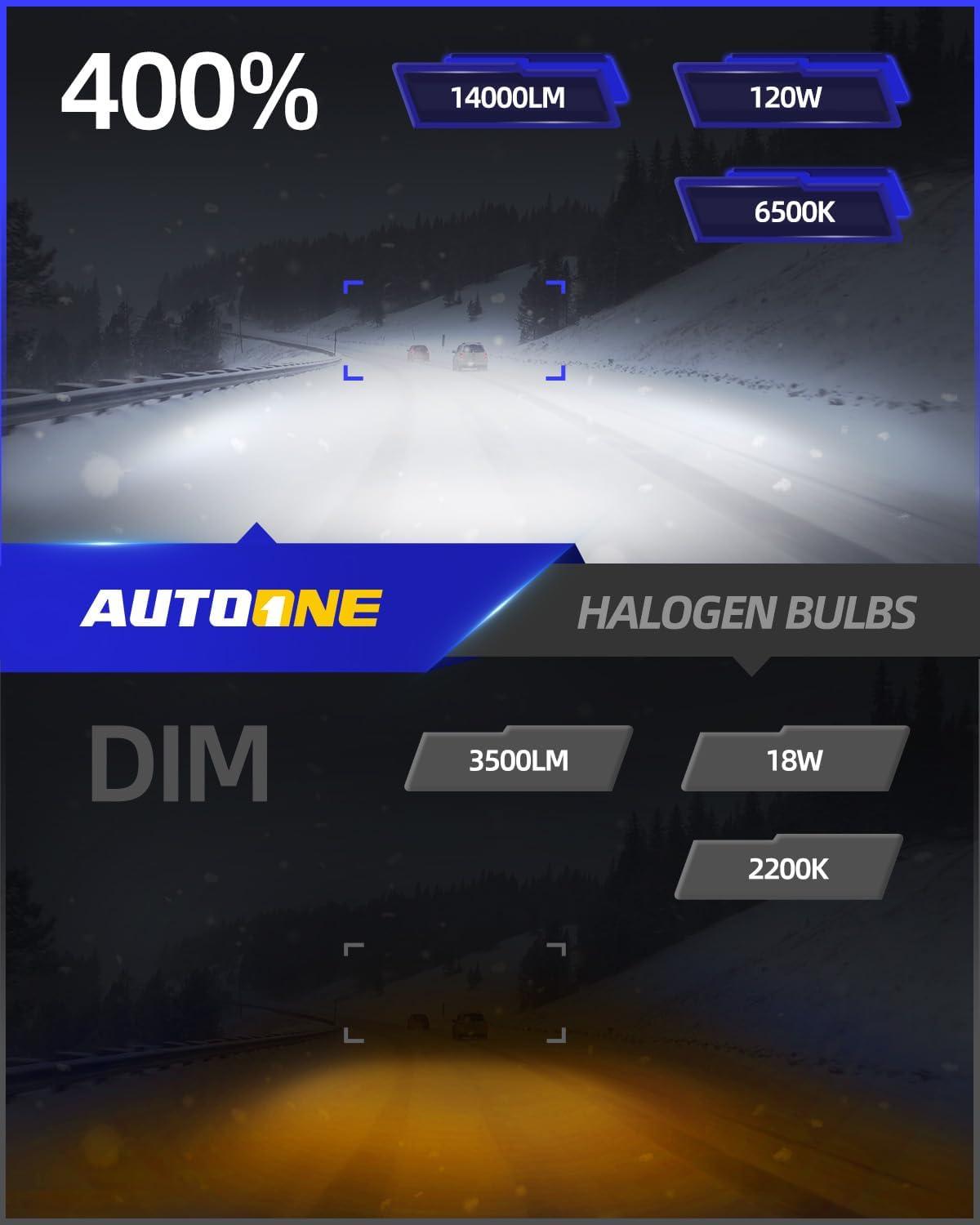 600% Brighter Than Halogen: Generating 60,000 lumens per set at 6000K, these high-performance bulbs far surpass standard halogen options, allowing you to see further and react more quickly on the road
