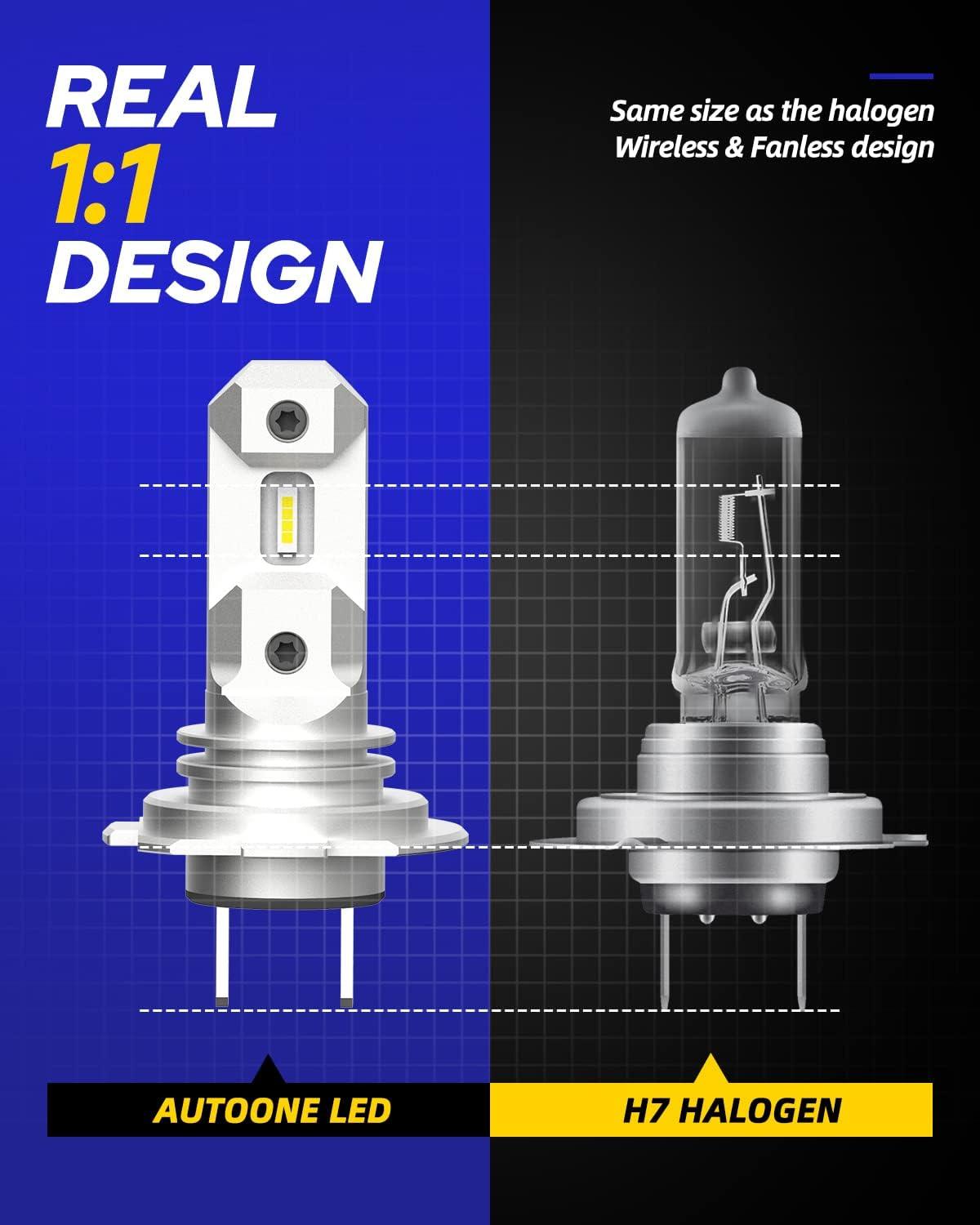 AUTOONE 9005 9006 LED Light Bulbs Combo, 600% Super Bright 6000K Cool White, 1:1 Mini Halogen Size 9005 HB3 & 9006 HB4 Accessory Fog Light, Non-Polarity Plug and Play, Pack of 4(H7)