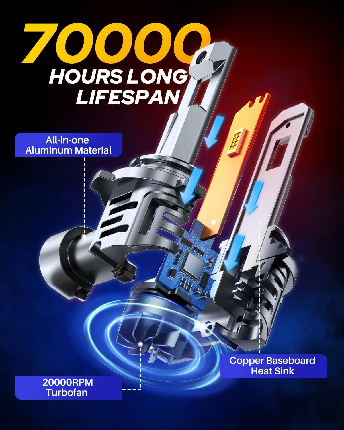 Unmatched Performance & Durability: Built to last, feature premium aviation aluminum housing, coupled with a thermostatic copper plate. This advanced cooling system keeps the bulbs at optimal temperatures for consistent performance and extends their life to an impressive 60,000 hours, offering both reliability and longevity