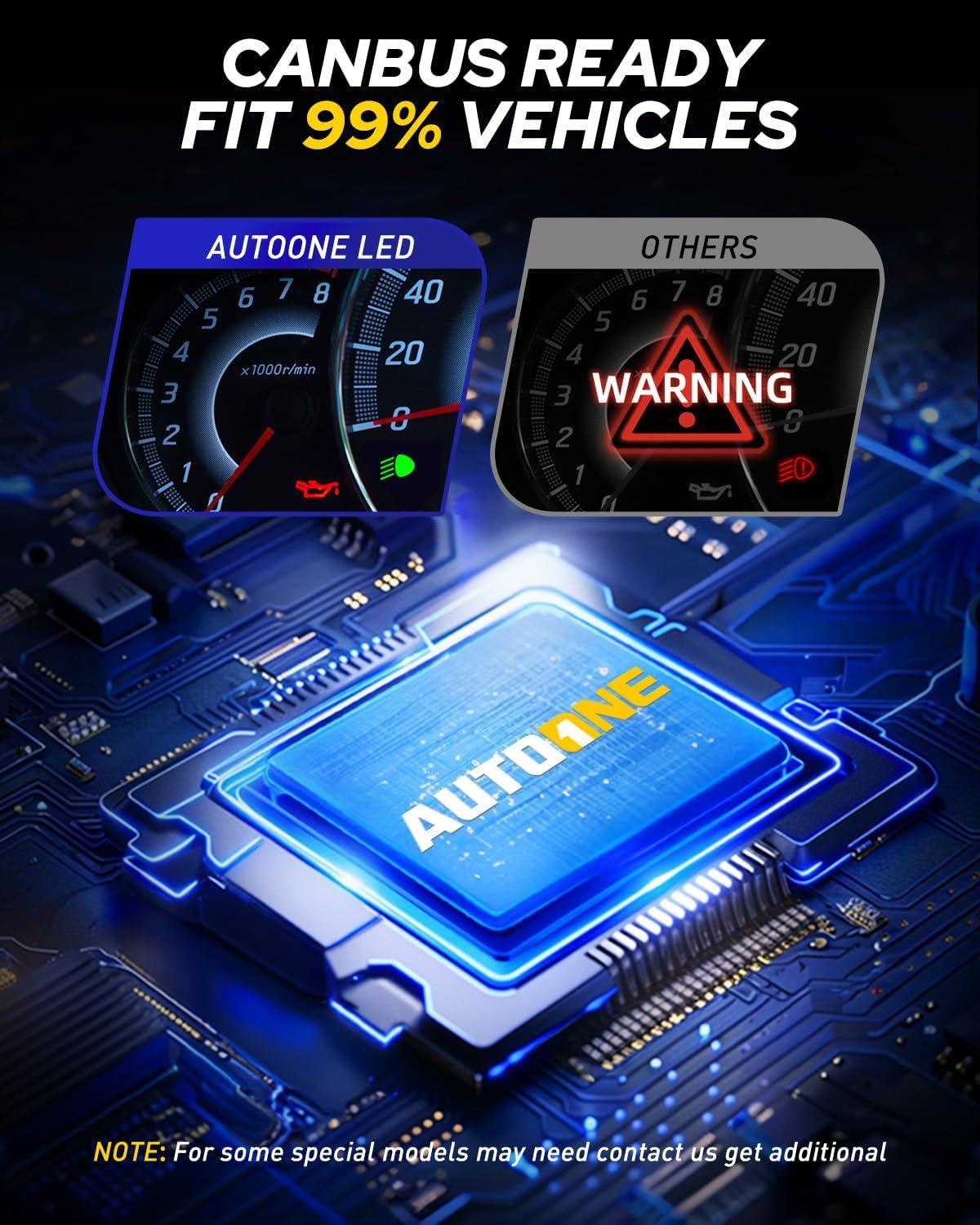 CAN BUS-Ready for 99% Vehicles: Smart IC driver, our automotive light bulbs work with 99% of vehicle's computer system without error. For a small number of highly sensitive models, decoders may be needed. Contact AUTOONE for custom solutions to ensure a perfect fit