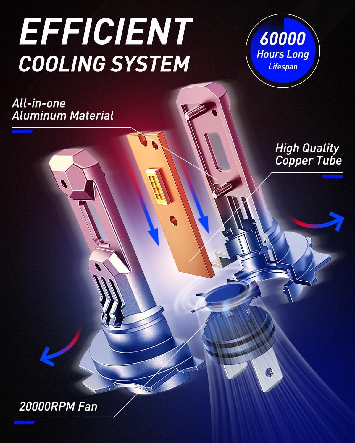 Unmatched Performance & Durability: Built to last, feature premium aviation aluminum housing, coupled with a thermostatic copper plate. This advanced cooling system keeps the bulbs at optimal temperatures for consistent performance and extends their life to an impressive 60,000 hours, offering both reliability and longevity