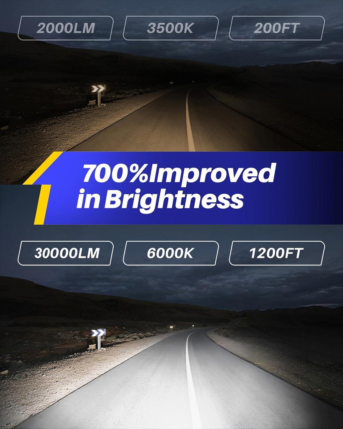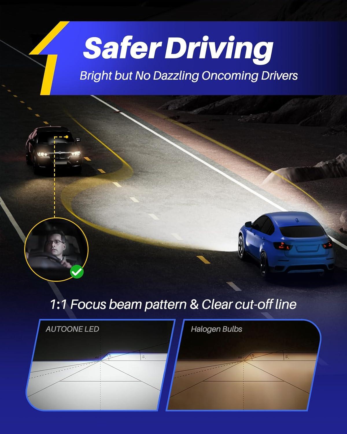 【500% Brightness】- AUTOONE 9005 LED light bulbs are equipped with superior ZES LED chips. Provides excellent 360° illumination and 20,000 LM output with no dark spots or shadow light. Great 500% brightness update for fog light