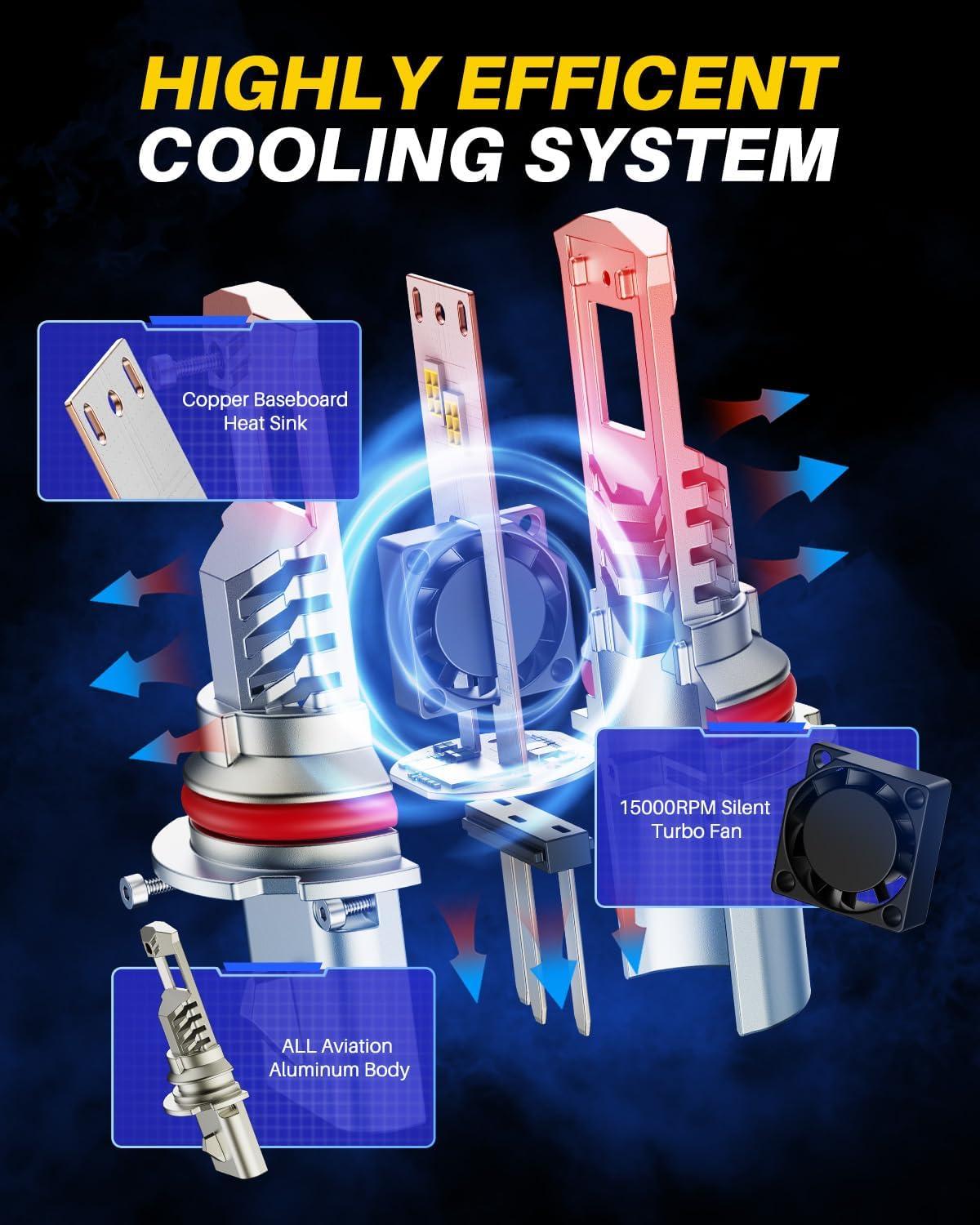 AUTOONE 9005 LED Bulb, 800% Brighter, 3 Min Quick Install, 20 Years Lifespan, No Flicker, 99% Compatibility(9007/HB5)