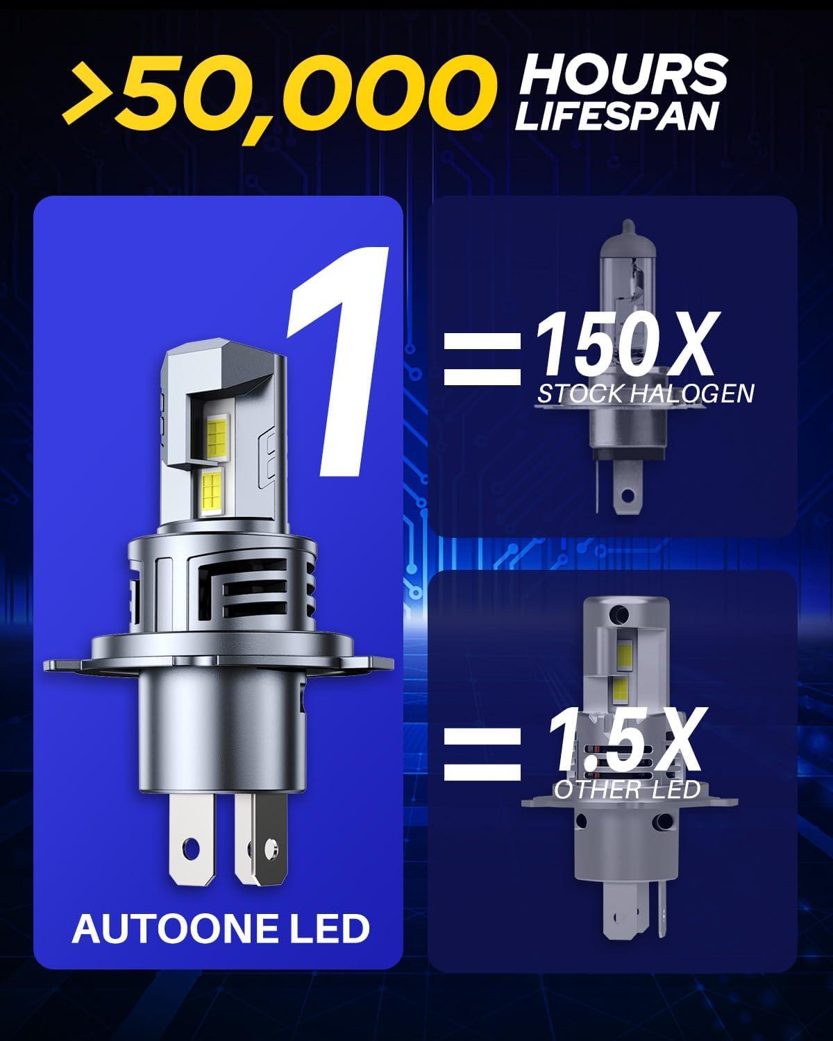 Be the first to review “AUTOONE 9012 Led Bulbs, 24,000LM with Cooling Fan, HIR2 Powersport Fog Lamp, IP68 Waterproof, Quick Installation, Pack of 2(9003/HB2/H4)”