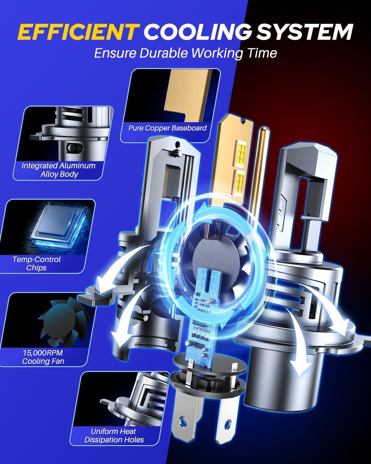 AUTOONE 9012 Led Bulbs, 24,000LM with Cooling Fan, HIR2 Powersport Fog Lamp, IP68 Waterproof, Quick Installation, Pack of 2(9003/HB2/H4)