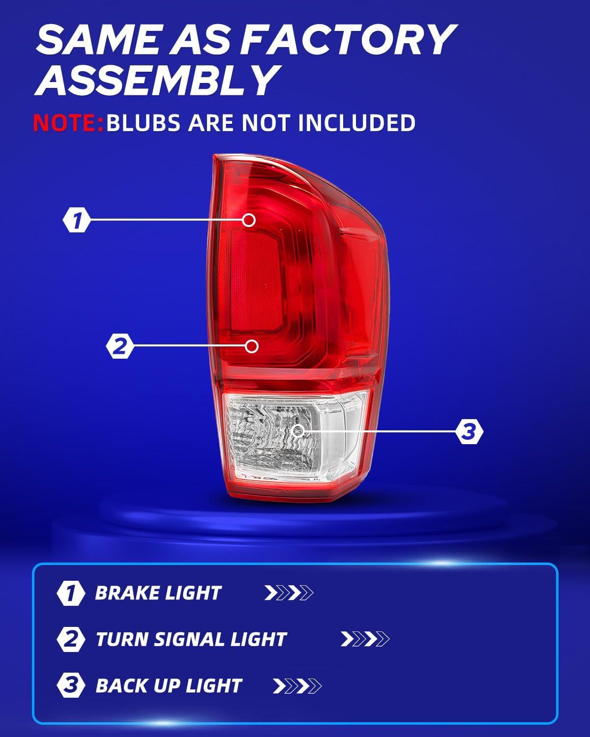 AUTOONE For Toyota Tacoma Tail Lights Assembly, Tail Lamp Assembly Fit for 2016-2023 Tacoma Pickup Rear Factory OEM Passenger Side, Without Bulbs(Left Side)