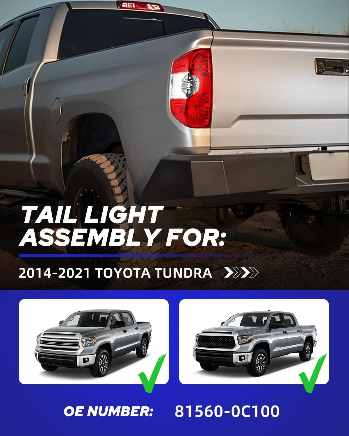【Fitment】-AUTOONE TUNDRA tail light assembly is compatible with 2014-2021 Toyota Tundra. Please confirm the OE number before purchasing our TUNDRA rear light assembly: 81550-0C101.