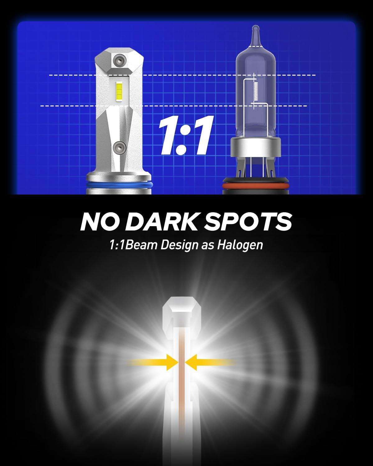 【Plug and Play】H1 Light Bulb is the 1:1 size same as halogen bulb. Wireless design, no external driver, no additional adapters needed, installation in less than 10 minutes. The non-polarized design and compact structure eliminate the need for oversized bases or additional drivers, making installation quick and hassle-free.