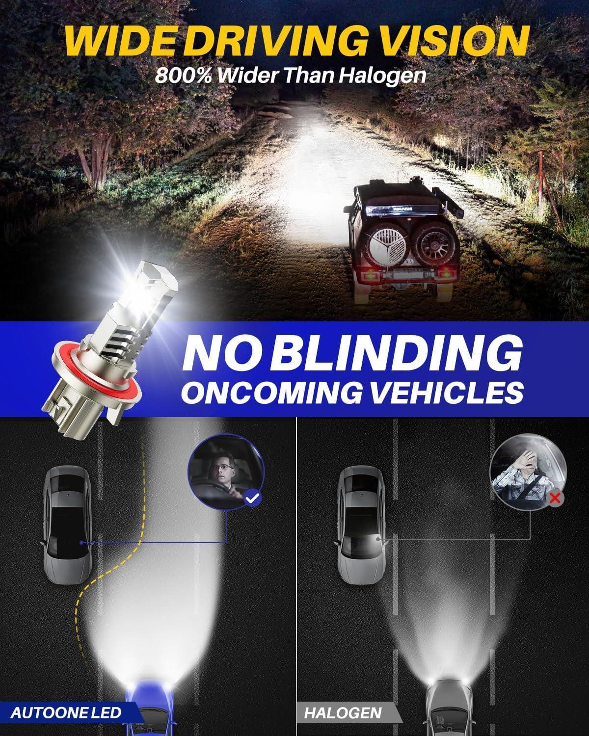 【Perfect-Focused Safety Beam】Engineered to replicate the beam pattern of halogen lamps, the new AUTOONE H1 bulbs provide a well-defined, focused light with a clear cut-off line. This design maximizes road visibility while minimizing glare for oncoming drivers, ensuring a safer driving experience for everyone on the road.