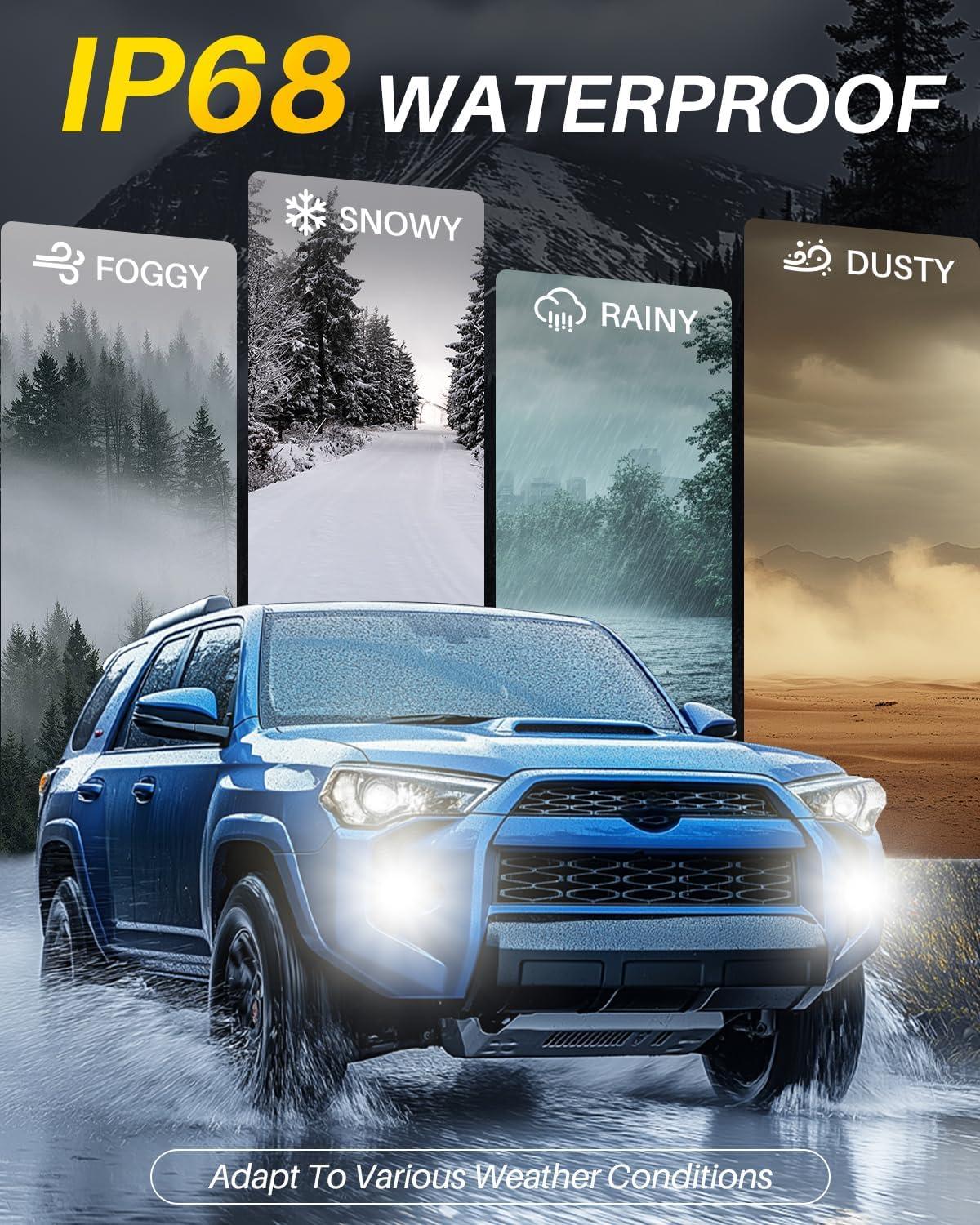 【More Than 50000HRS Longer Lifespan】Crafted from aerospace-grade aluminum with a unique hollow-carved structure, ensuring long-lasting performance. The anti-aging rubber ring offers IP67 waterproof and dustproof protection, extending the lifespan of your h1 fog lights for up to 50,000 hours.