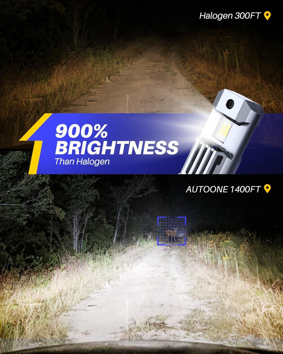 Huge Improvement in Visibility: AUTOONE h11 led lights are equipped with high luminous efficacy CSP chips. And 1:1 halogen h9/h11 bulbs’ beam pattern, spread out the light more to help in the side and front vision but no endangering others. Safer and bright upgrade