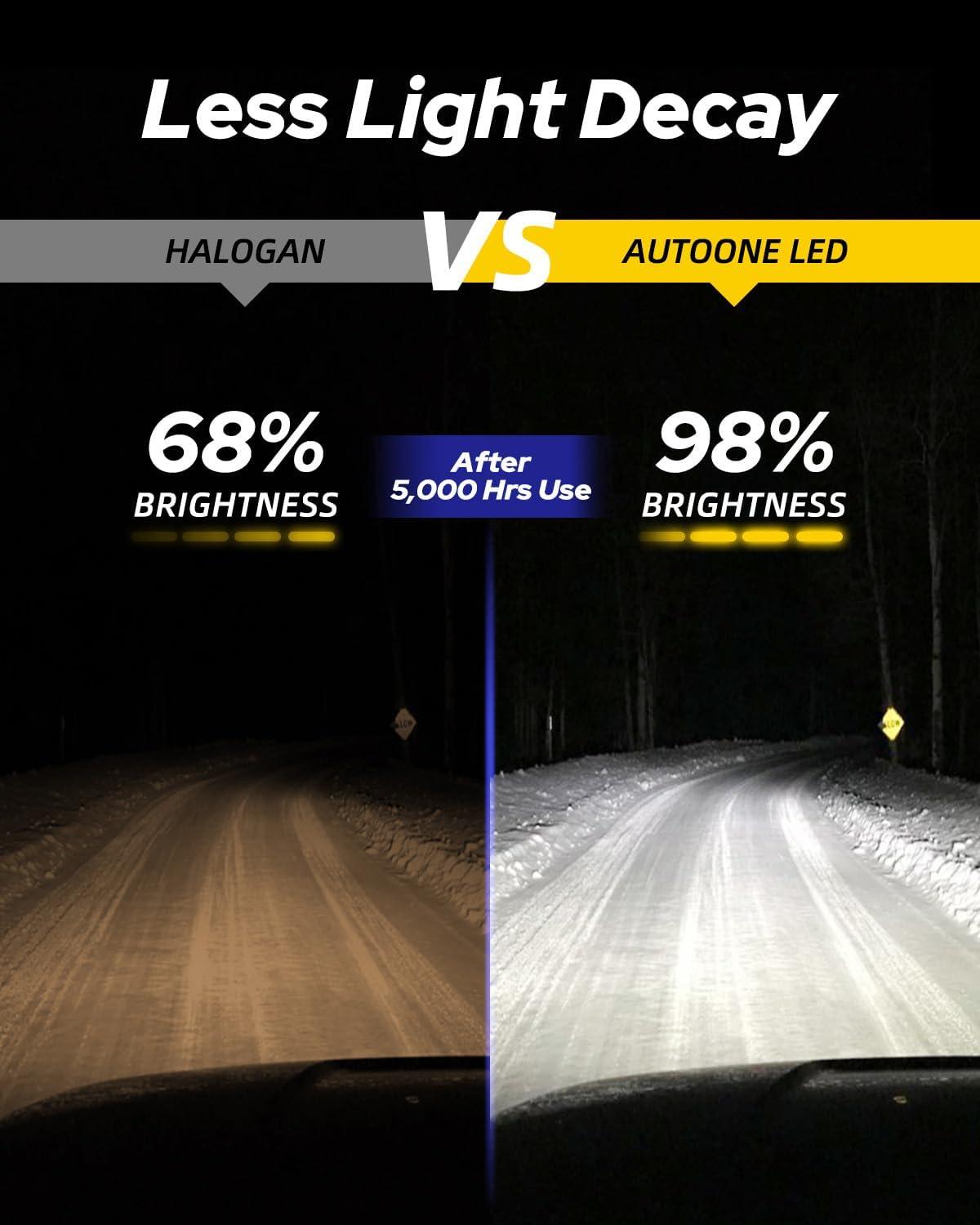 Huge Improvement in Visibility: AUTOONE h11 led lights are equipped with high luminous efficacy CSP chips. And 1:1 halogen h9/h11 bulbs’ beam pattern, spread out the light more to help in the side and front vision but no endangering others. Safer and bright upgrade