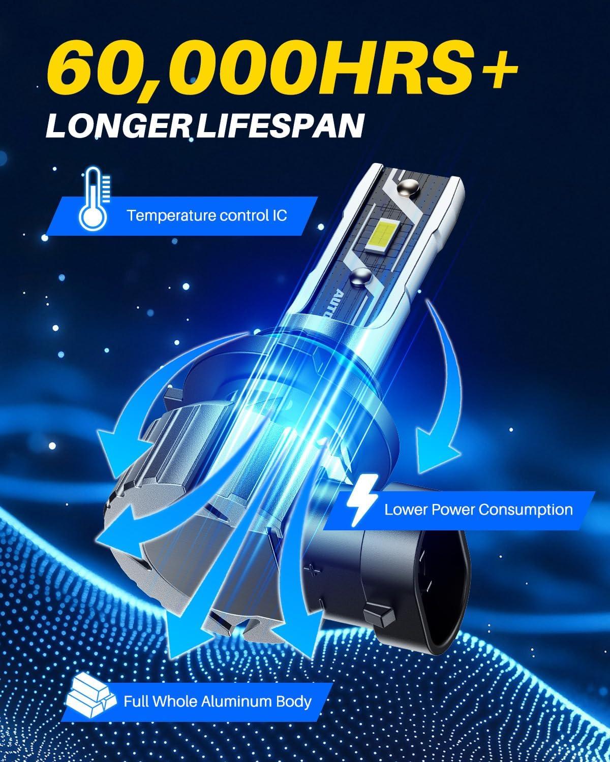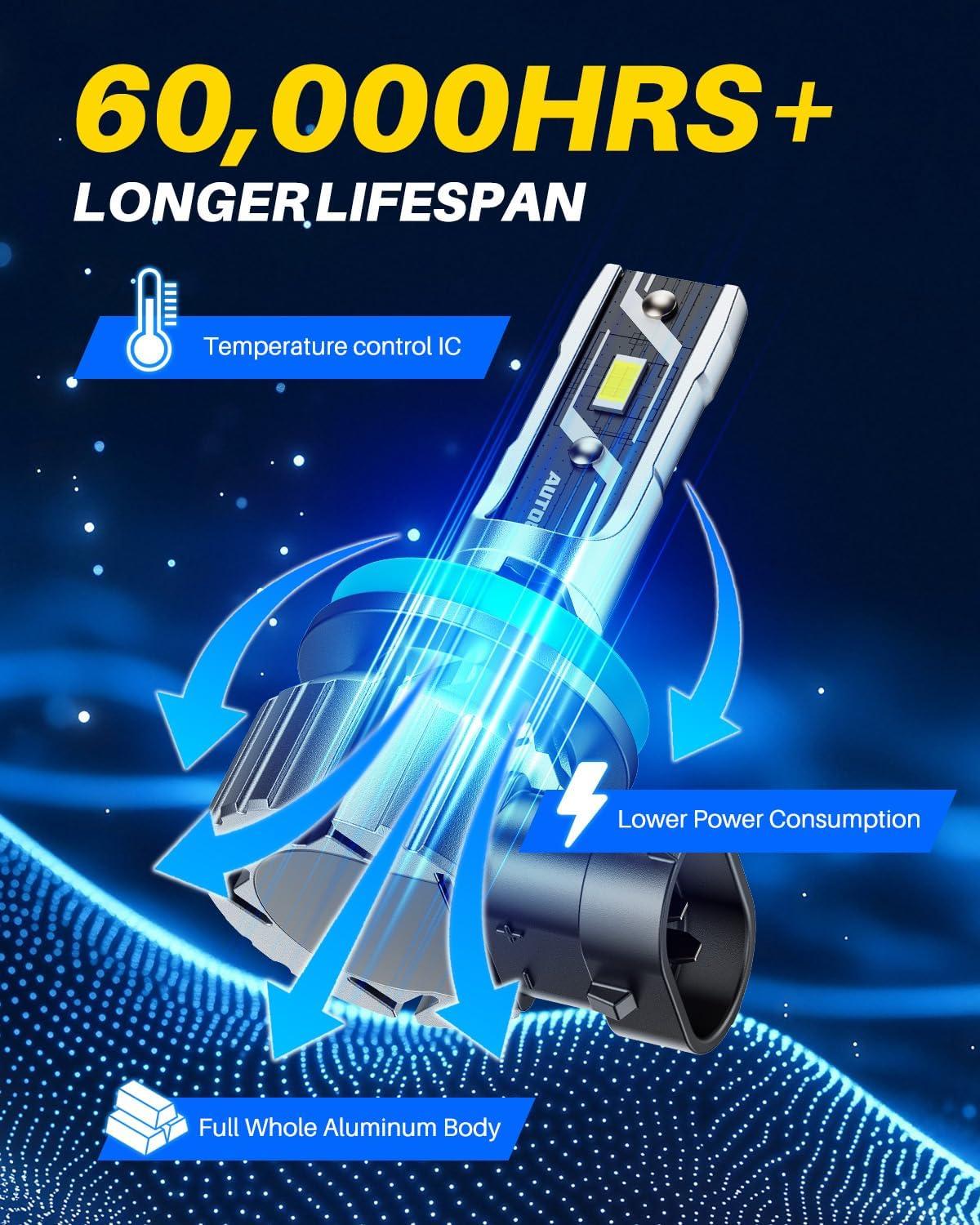 【Better View in Low-visibility Day】AUTOONE H11 LED fog light bulb uses high-performance 7035 CSP chips, providing 400% more brightness than standard bulbs. Ideal for challenging weather conditions like fog, rain, and snow