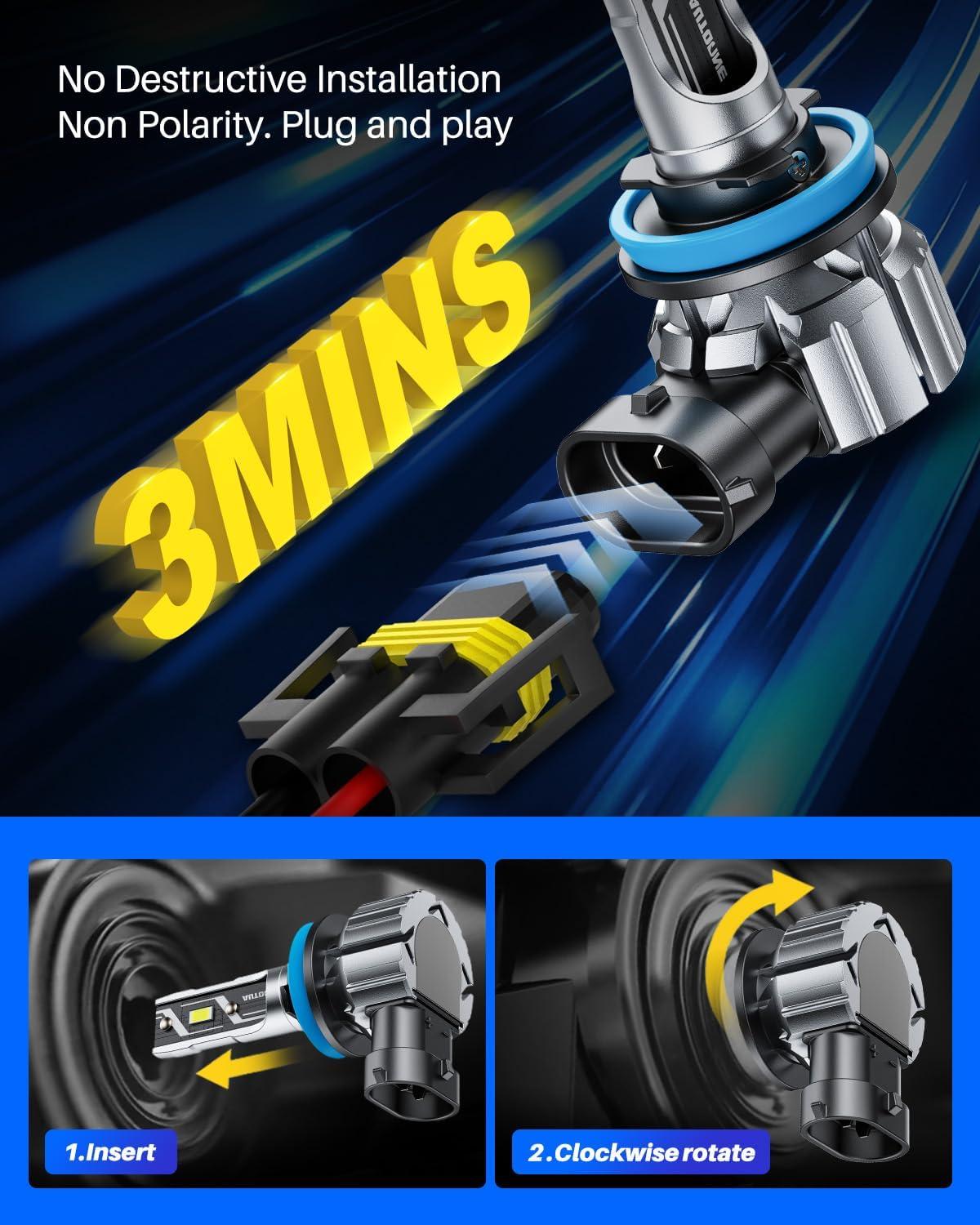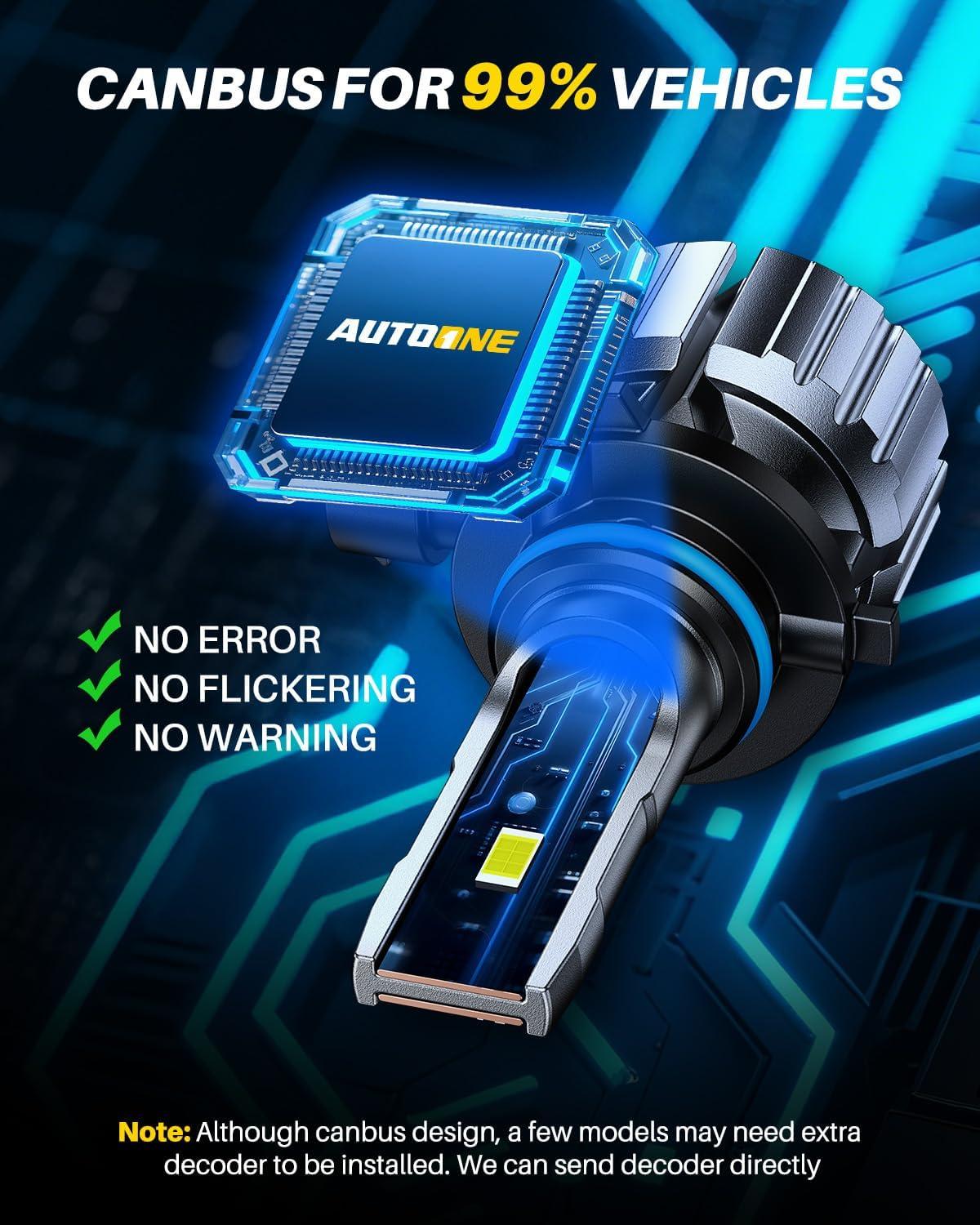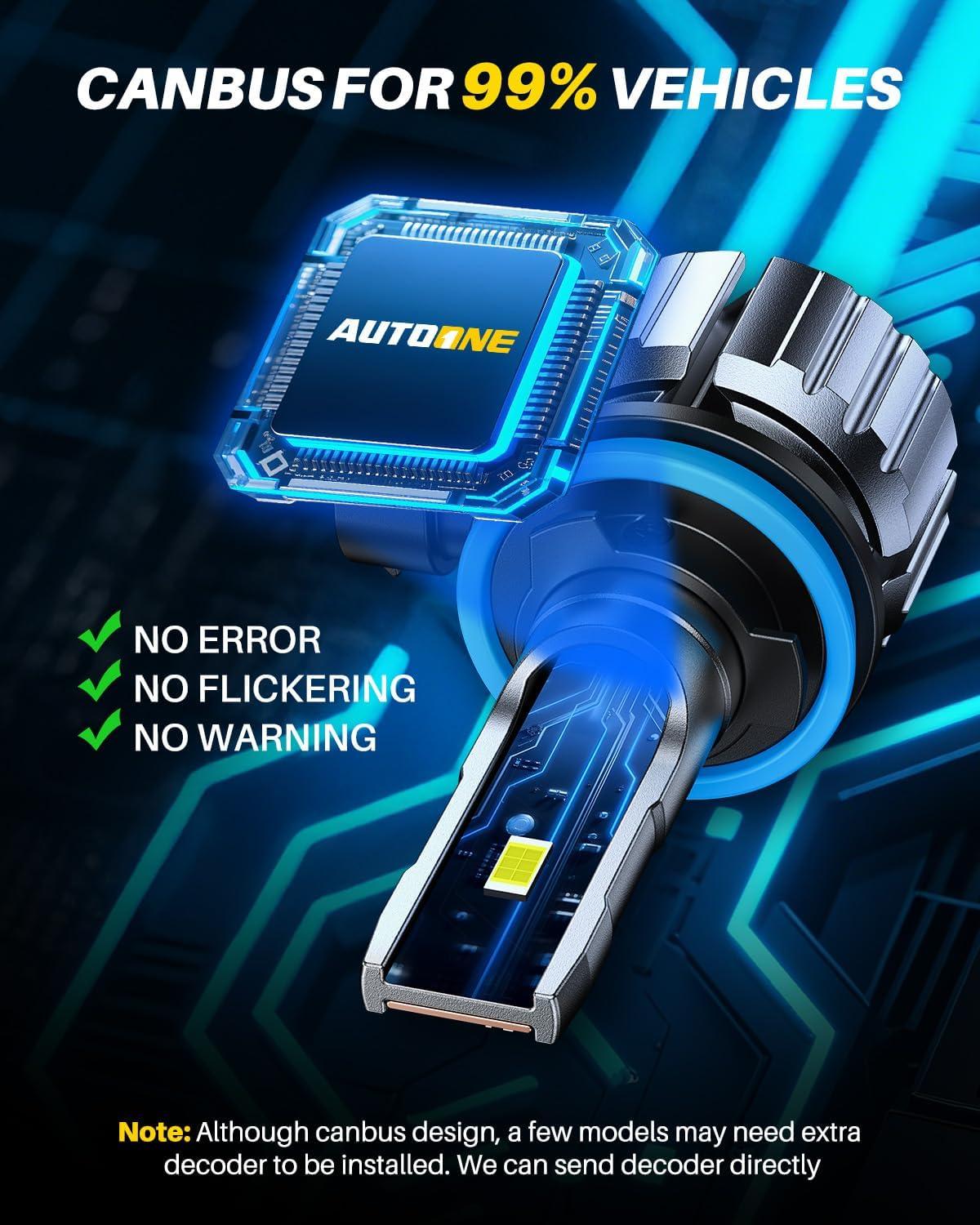 【5-Min Easy to Install】 Autoone H11 led fog bulbs are 1:1 design, perfectly fit into the bulb housing and factory plug, don’t worry matching issues. With canbus design, having no error message, radio static or flickering problem for fog lights on 99% of vehicles