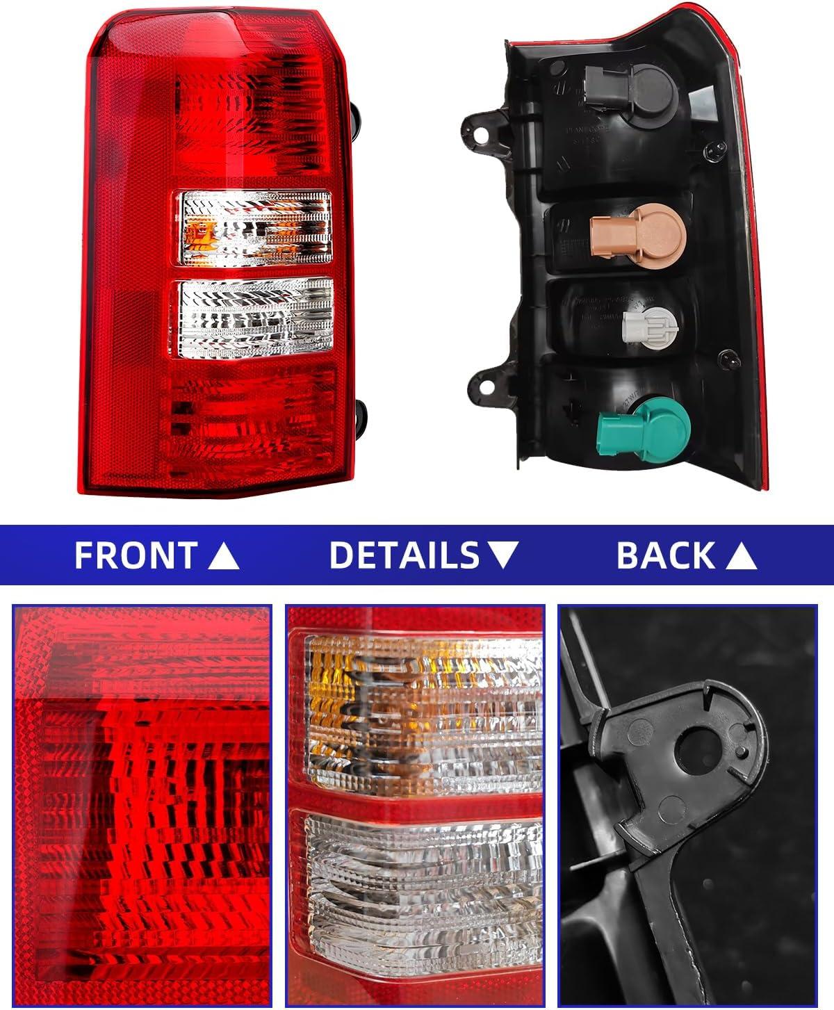 Vehicle Fitment: Right tail light compatible with 2008-2016 Jeep Patriot. For 2008-2016 Patriot Sport Sport Utility 4-Door, For 2008-2015 Patriot Limited Sport Utility 4-Door, For 2011 Patriot Latitude X Sport Utility 4-Door, For 2011-2017 Patriot Latitude Sport Utility 4-Door, For 2016 Patriot 75th Anniversary Sport Utility 4-Door.