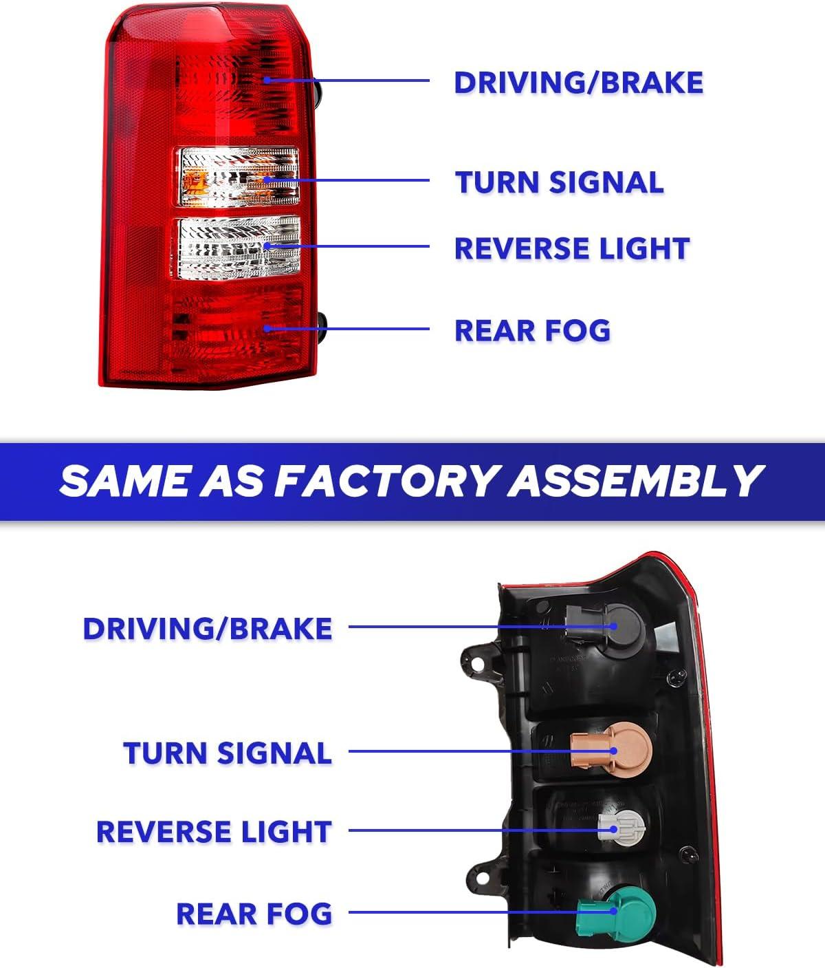PLUG AND PLAY:Users can easily install without needing for any kind of modifications to the cars or tail lights. Autoone jeep patriot tail lights are exactly like and fit OE factory lamps.