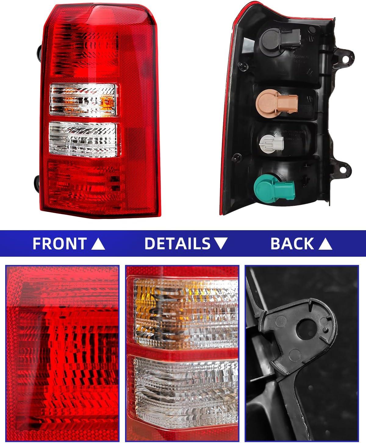 Vehicle Fitment: Right tail light compatible with 2008-2016 Jeep Patriot. For 2008-2016 Patriot Sport Sport Utility 4-Door, For 2008-2015 Patriot Limited Sport Utility 4-Door, For 2011 Patriot Latitude X Sport Utility 4-Door, For 2011-2017 Patriot Latitude Sport Utility 4-Door, For 2016 Patriot 75th Anniversary Sport Utility 4-Door.