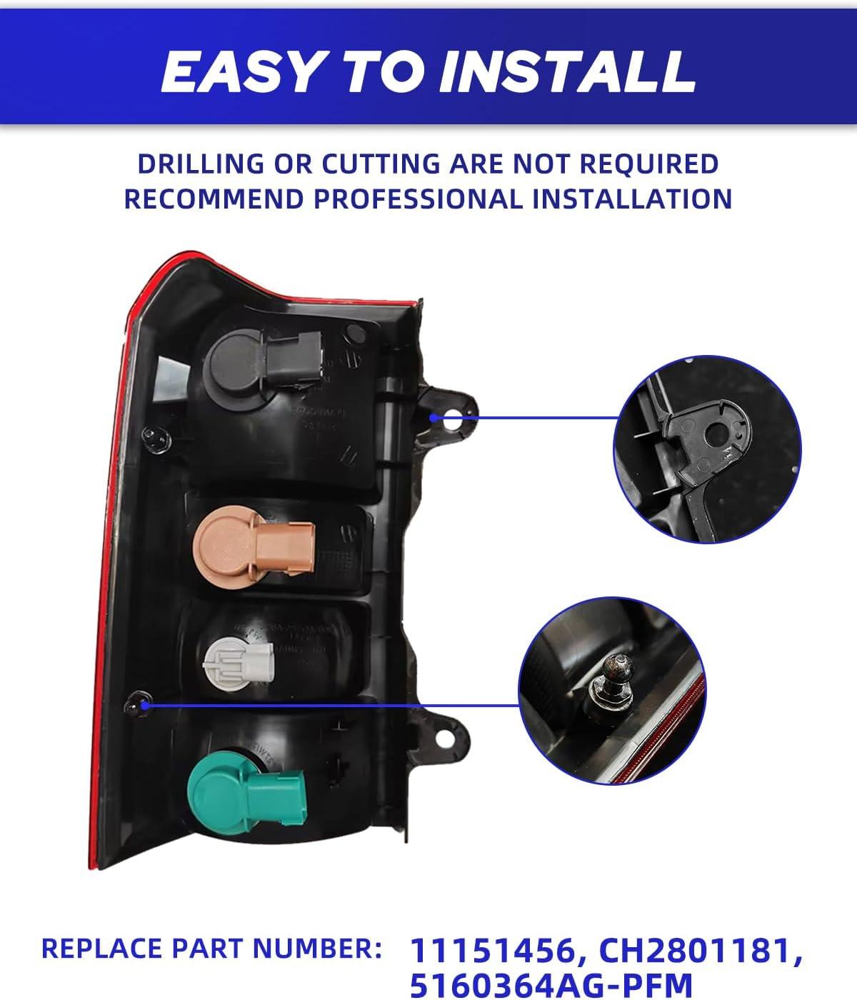 PLUG AND PLAY:Users can easily install without needing for any kind of modifications to the cars or tail lights. Autoone jeep patriot tail lights are exactly like and fit OE factory lamps.