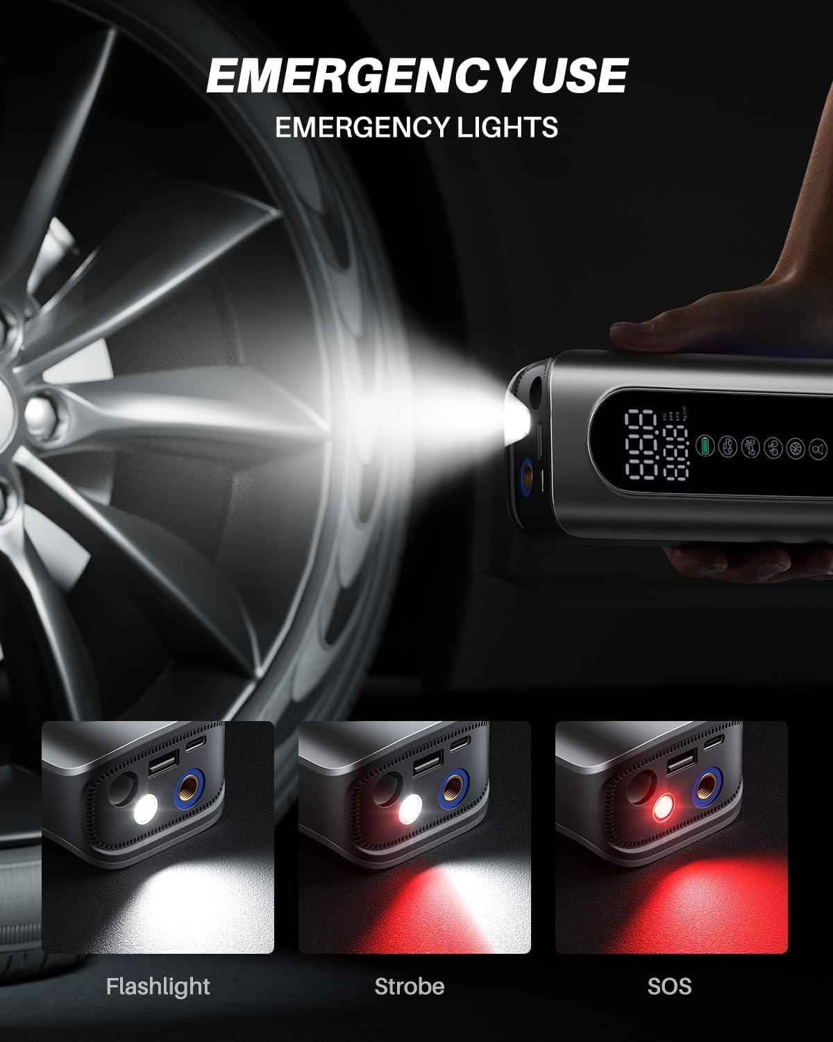 STRONG BATTERY POWER: The air pump has a built-in 5200mAh rechargeable battery, large-capacity battery allows the car tire pump to refill up to 12 tires (195/60/R15) from 30-36PSI. eliminating the need for an external power source when operating the portable air compressor for tire inflation. No more hassle of finding a power source or dealing with tangled cords.