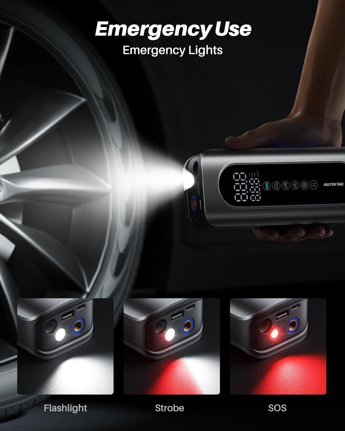 AUTO SHUT OFF: Use the “+” and “-” control buttons on the AUTOONE to easily select your desired pressure, or select a preset mode (car, motorcycle, bike, ball) with one click. Once the correct pressure has been reached the smart tire inflator will automatically shut off. Safe and reliable use for users unfamiliar with air pressure settings.