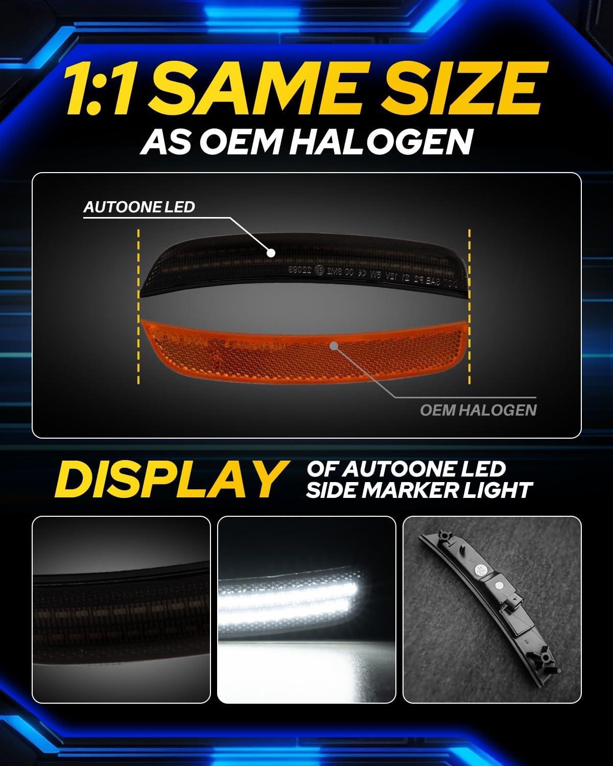 【Fitment】: AUTOONE dynamic LED side marker lights compatible with 2015-2023 Chrysler 300, ensuring a perfect fit and seamless integration with your vehicle's body. Direct LED replacement for the side marker lights for Chrysler 300, the OEM number: 68214402AD, 68214403AD, 68213844AD,68213845AD.