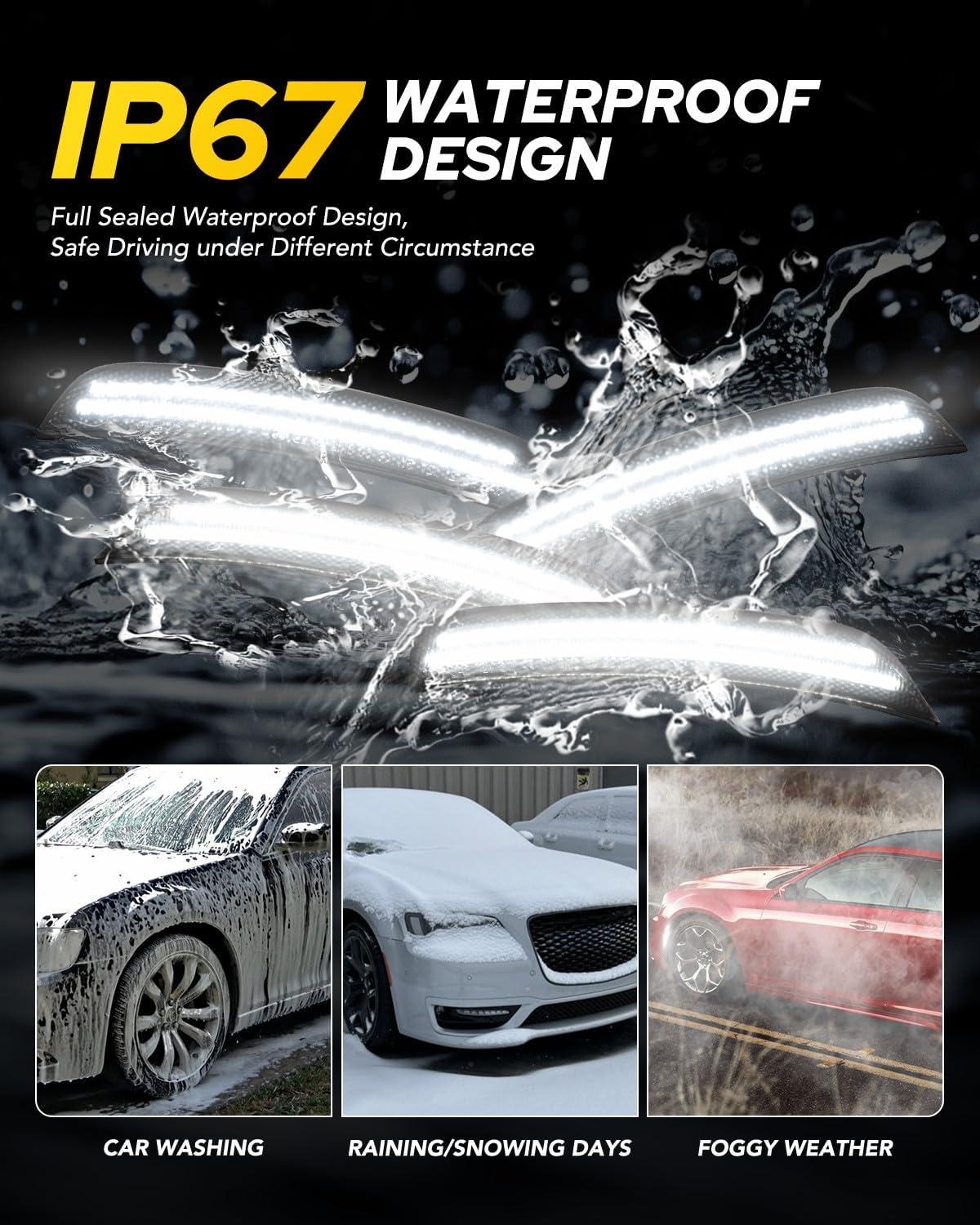【5MIN Easy Installation】: These dynamic white LED side marker light kit for 15-23 Chrysler 300 is a plug-and-play replacement for the factory fender lights, the LED marker light kit is designed to work without any modifications. Easy to installation, just unplug the old side signal lights and insert the new automotive LED side marker lights. No error codes, no flickering, hyper-flashing, or radio interference.