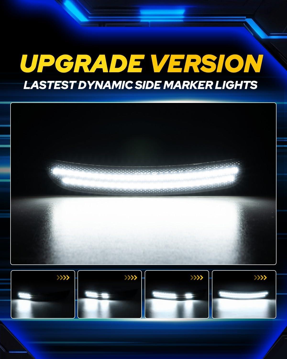 AUTOONE Upgraded Dynamic LED Side Marker Lights White Compatible With 2015-2023 Chrysler 300, White Front & Rear Bumper Marker Lamps Smoked Len, 4PCS(Dynamic White)