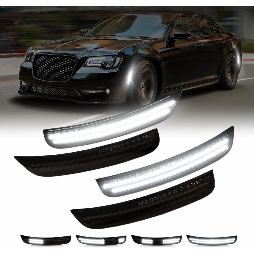 imageAUTOONE Upgraded Dynamic LED Side Marker Lights White Compatible With 20152023 Chrysler 300 White Front ampamp Rear Bumper Marker Lamps Smoked Len 4PCSWhite
