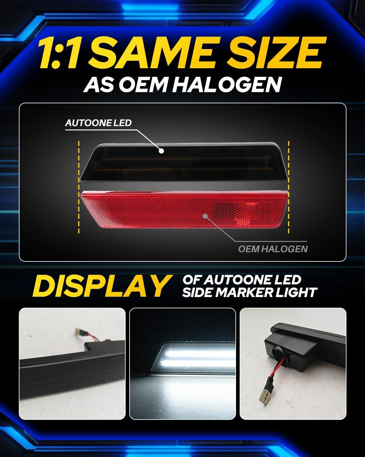 【Fitment】: AUTOONE front & rear LED side marker lights compatible with 08-14 Dodge Challenger, ensuring a perfect fit and seamless integration with your vehicle's body. Direct LED replacement for the side marker lights for Challenger, the OEM number: 68043395AA, 68043394AA,68039504AA, 68039505AA.