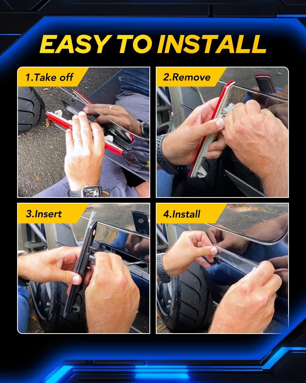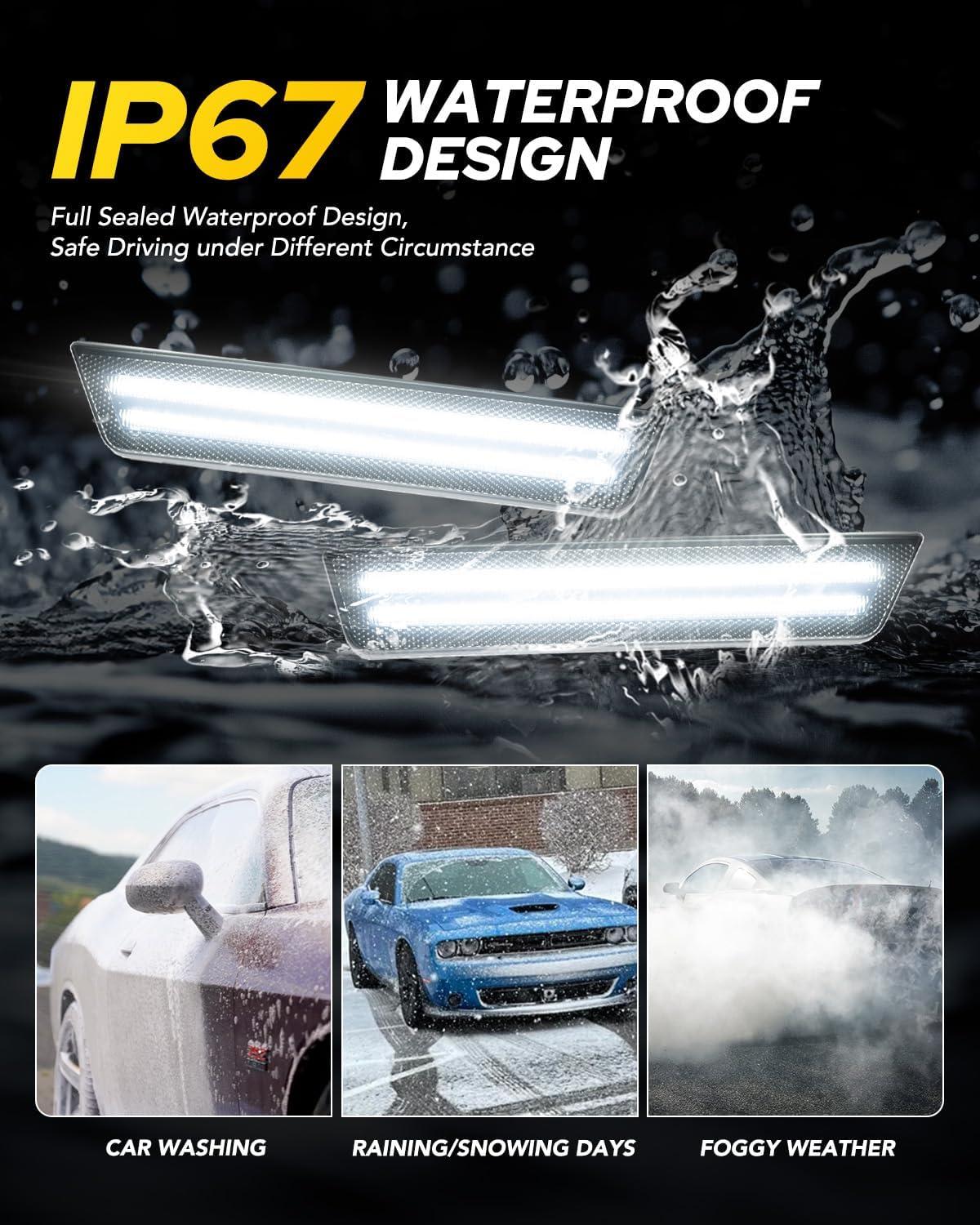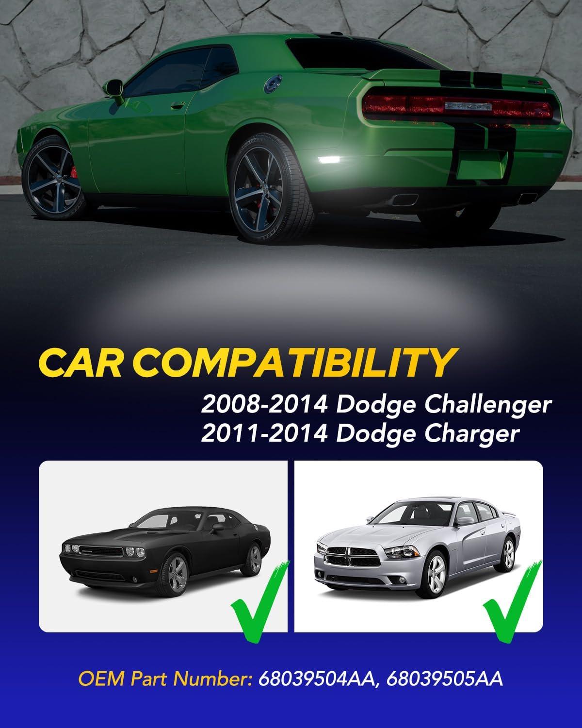【5MIN Easy installation】: These side marker lights for Dodge 08-14 Dodge Challenger is a plug-and-play replacement for the factory fender lights, the LED marker light are designed to work without any modifications and easy to Install. No error codes, no flickering, hyper-flashing, or radio interference.